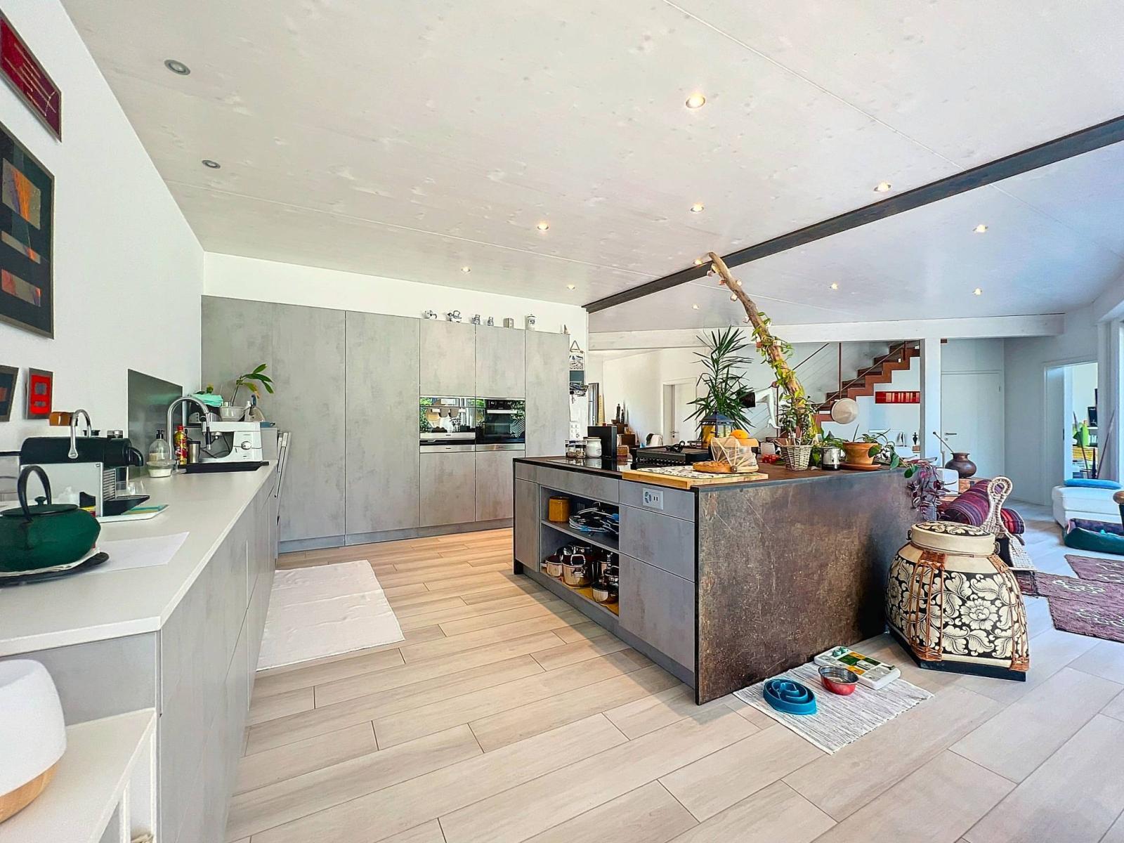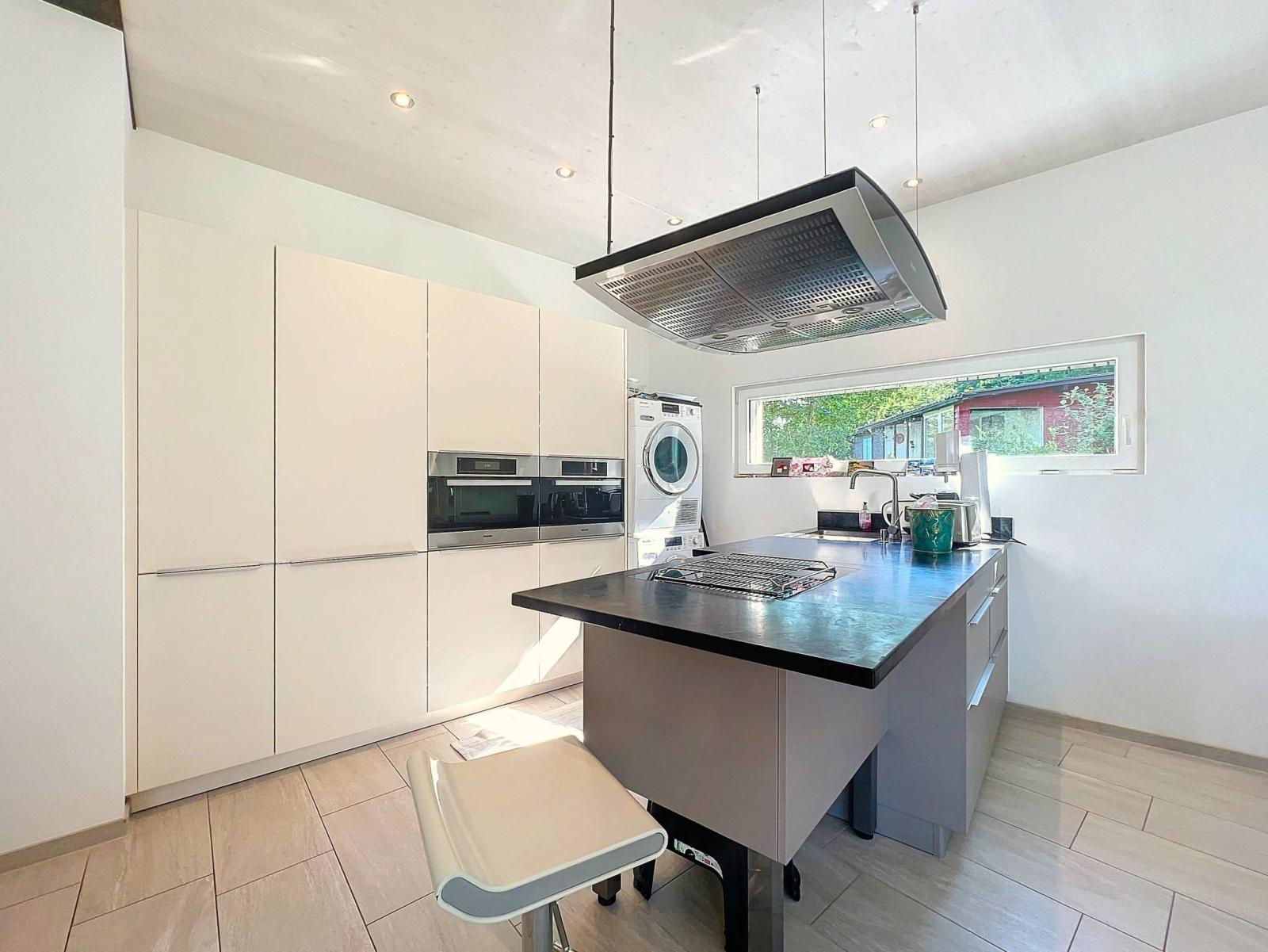 Das Erdgeschoss des ersten 6,5-Zimmer-Hauses wird Sie vom Eingang aus mit seiner geräumigen Halle verführen, die zu einem Wohnzimmer führt, das dank seiner großen Erkerfenster, die Zugang zu einer großen Terrasse sowie zum Garten bieten, lichtdurchflutet ist. Das moderne und Die voll ausgestattete Küche wurde mit hochwertigen Geräten ausgestattet, wie einer eingebauten Dunstabzugshaube auf der Arbeitsplatte, einem traditionellen Backofen und einem Dampfbackofen. Angrenzend an die Küche befindet sich ein großer Kommissar, den Sie durch eine versteckte Tür erreichen.
