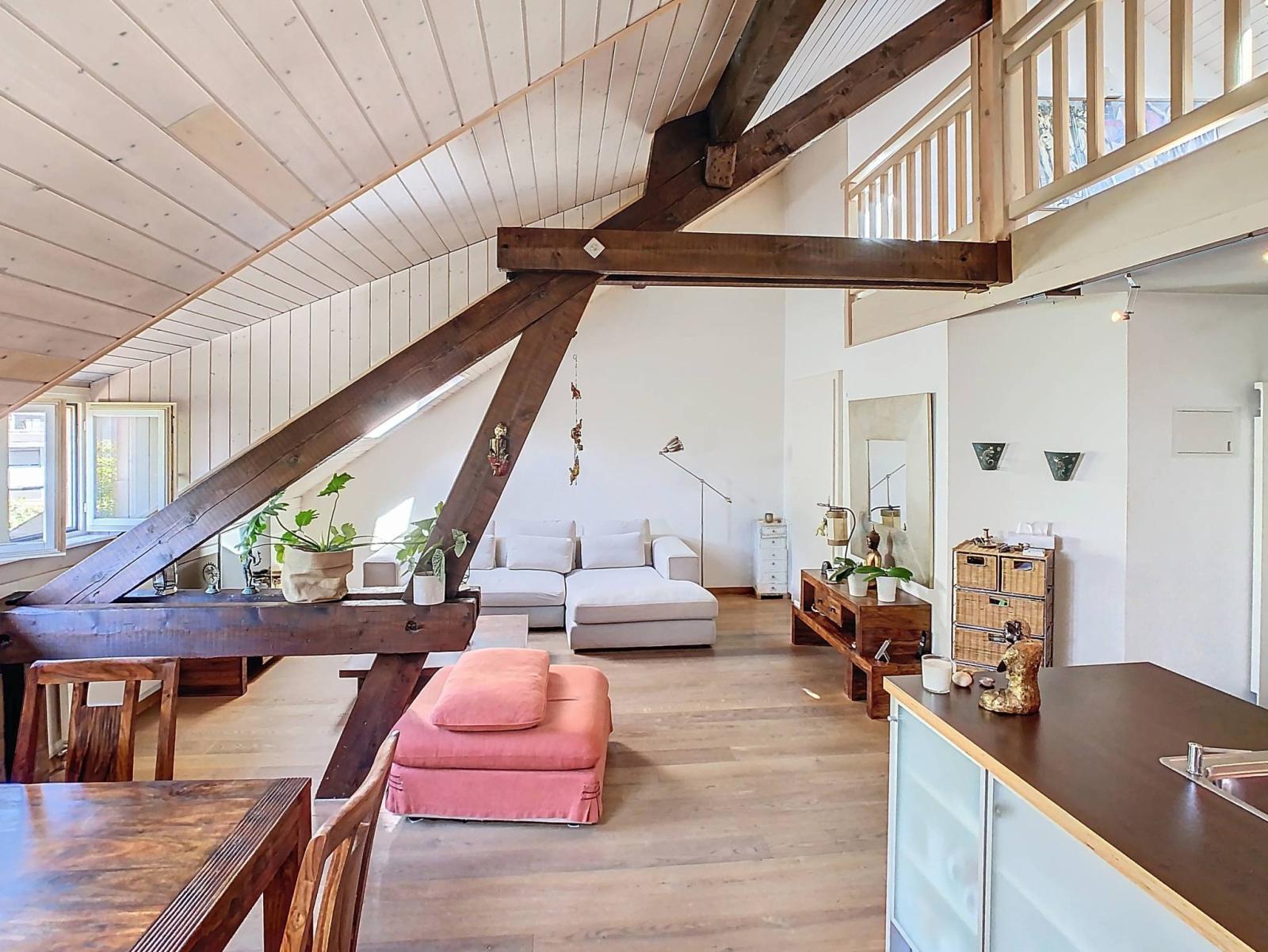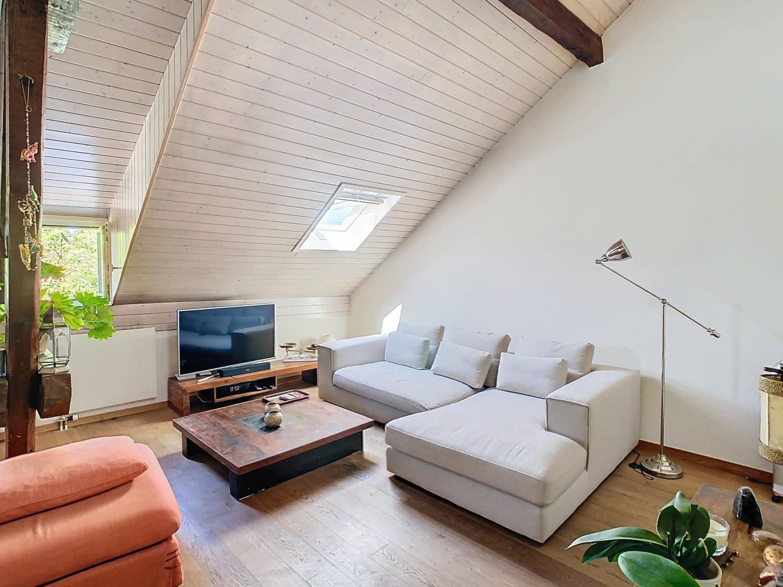 Diese charmante 4,5-Zimmer-Wohnung befindet sich im 2. und letzten Stock einer kleinen Wohnanlage (ohne Aufzug) im Dorf Perly.