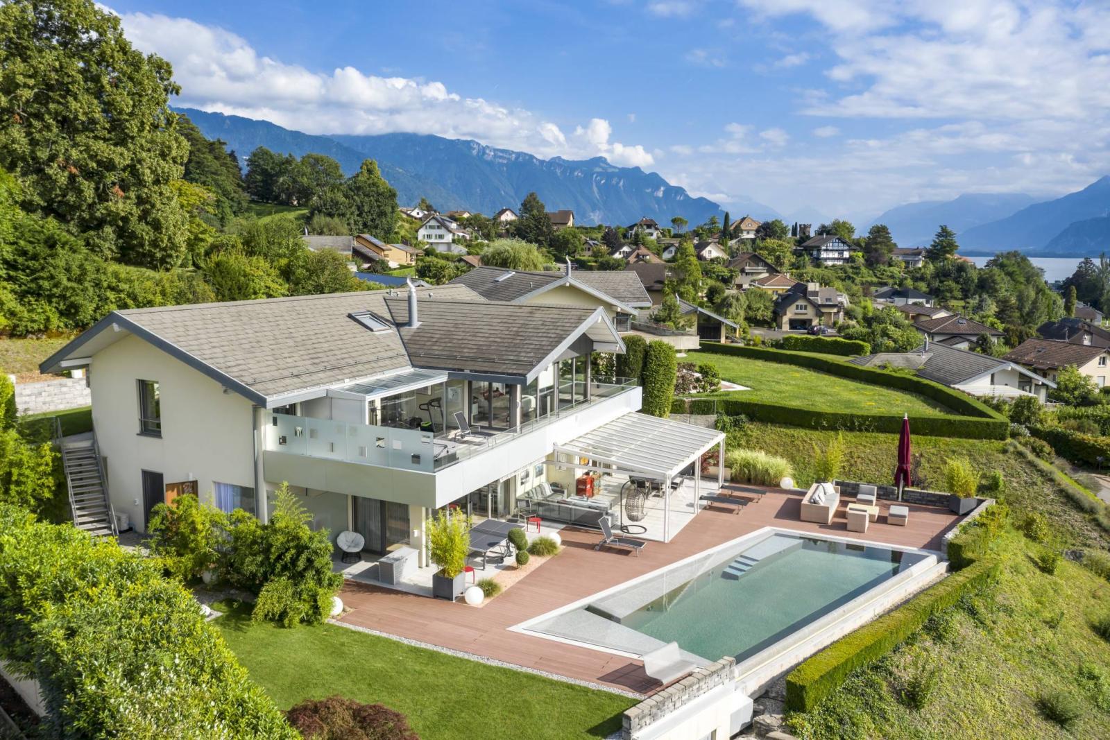 Diese freistehende Villa liegt in einem prestigeträchtigen Viertel von St-Légier und gehört zu den begehrtesten Residenzen der Region. Mit atemberaubender Aussicht auf den Genfersee und die Weinbergterrassen des Lavaux verkörpert dieses Anwesen Luxus und Eleganz.