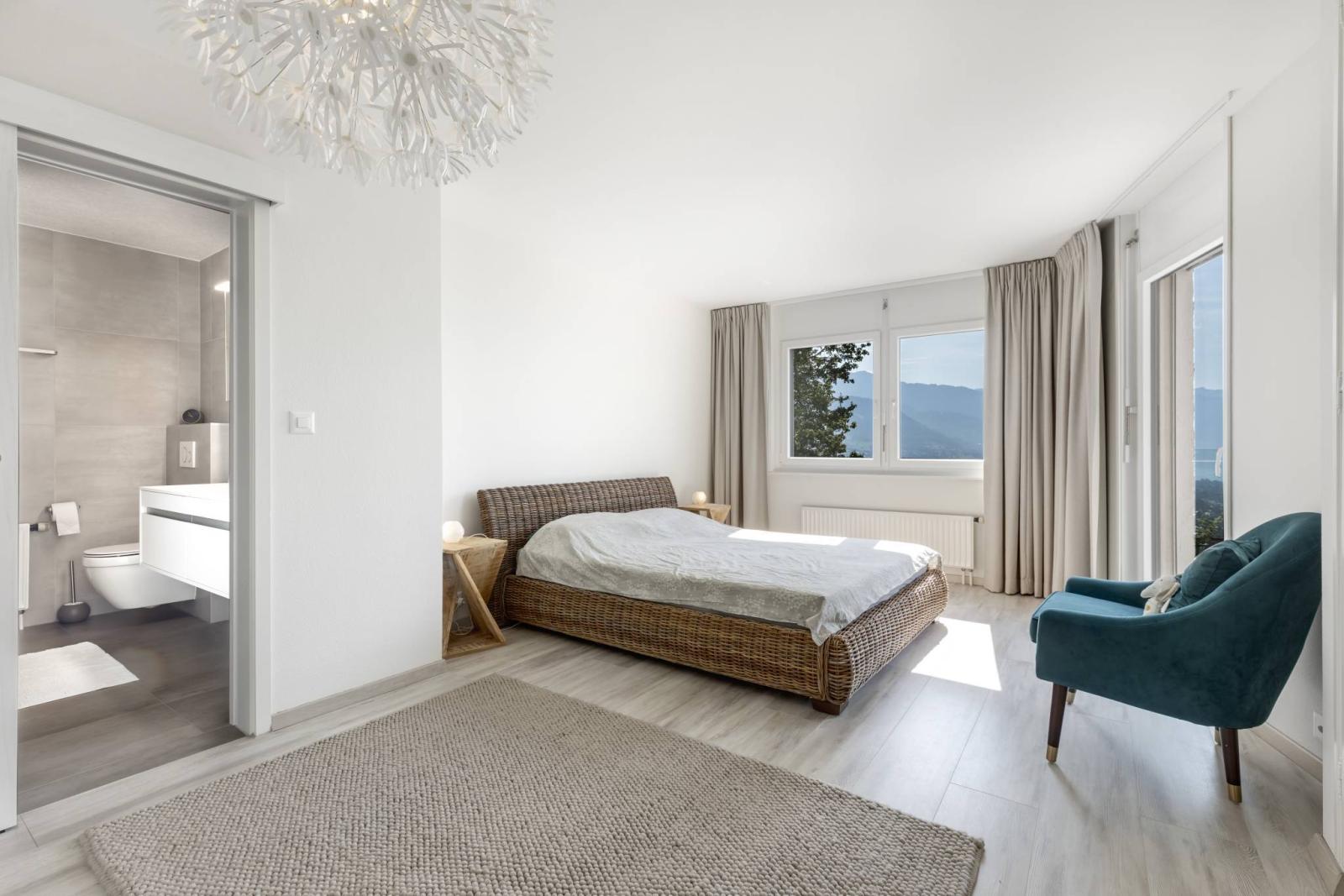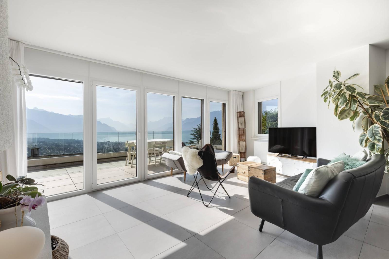 Mit seiner Südausrichtung profitiert es von maximalem Licht sowie einer atemberaubenden Aussicht auf den Genfersee und die Berge.