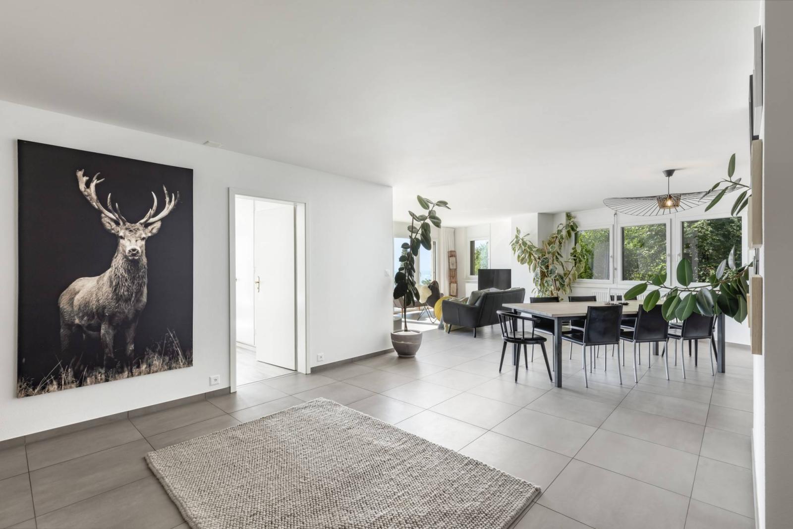 Dieses prächtige Apartment befindet sich in einer kleinen Wohnanlage mit nur 3 Grundstücken in Chardonne auf den Höhen von Vevey und genießt eine privilegierte Lage in der Nähe öffentlicher Verkehrsmittel in einer sehr ruhigen und grünen Wohngegend. Diese 5,5-Zimmer-Wohnung bietet eine gewichtete Wohnfläche von ca. 213 m² (198 m² Wohnfläche sowie großzügiger 30 m² Balkon).