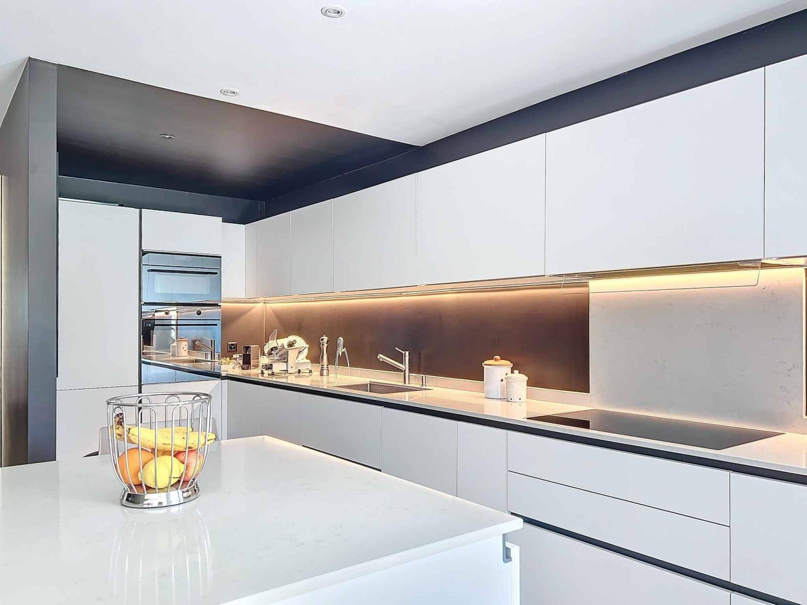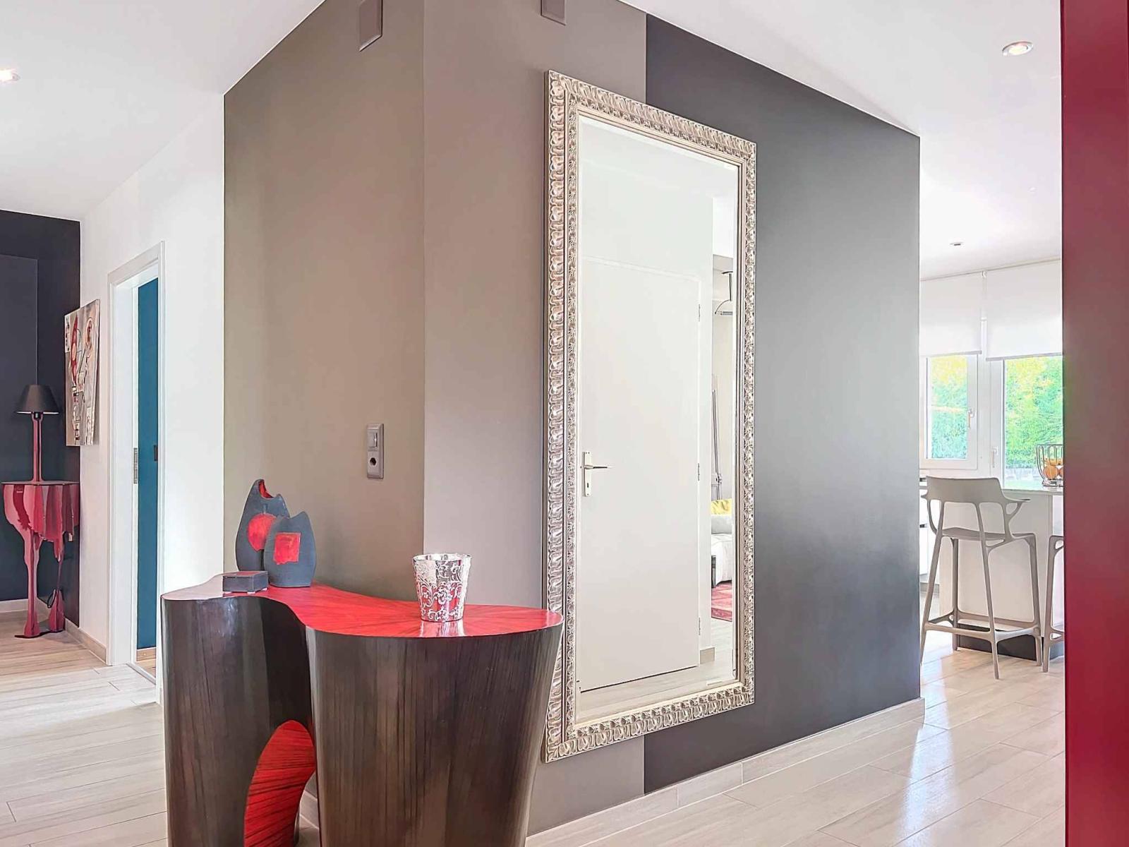 Es besteht aus einem Eingang, einem hellen Wohn-/Esszimmer und einer voll ausgestatteten Küche mit zentraler Insel, die Zugang zur Terrasse bietet.