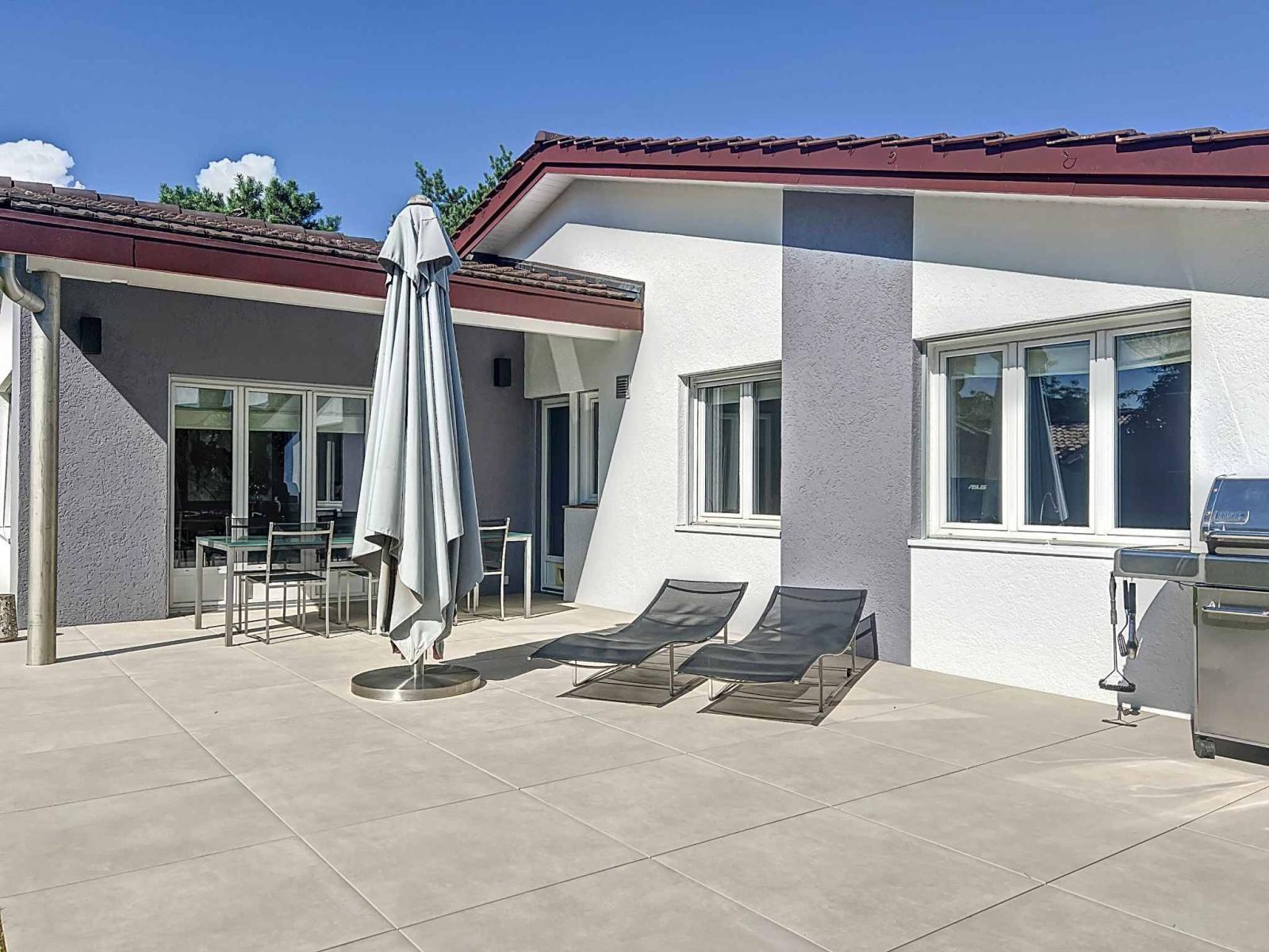 Ausgestattet mit einer in diesem Jahr installierten Wärmepumpenheizung verfügt diese einstöckige Villa über die heute geforderten Energiestandards.