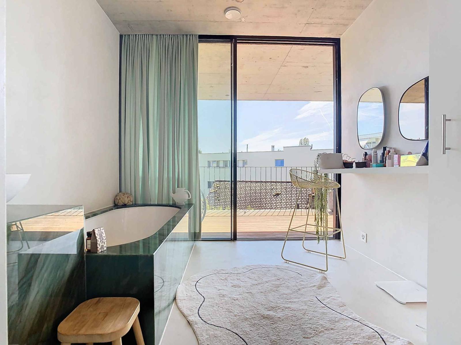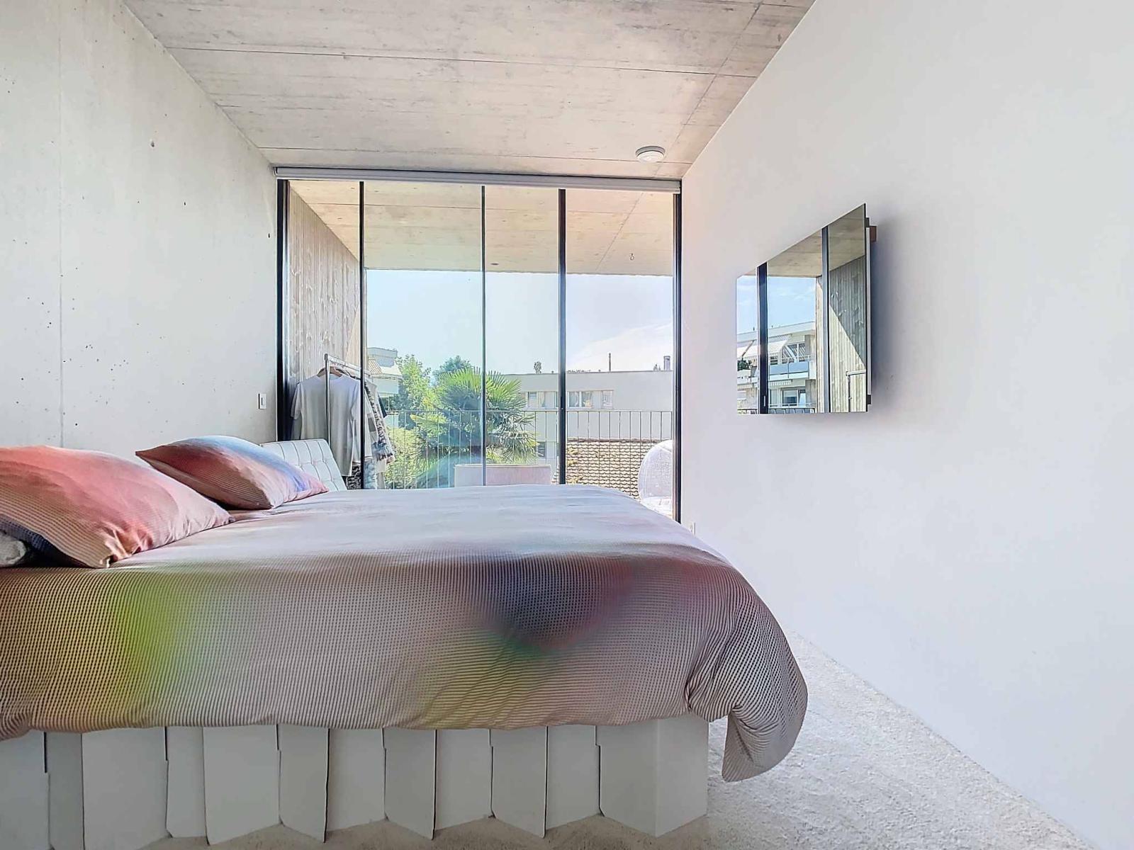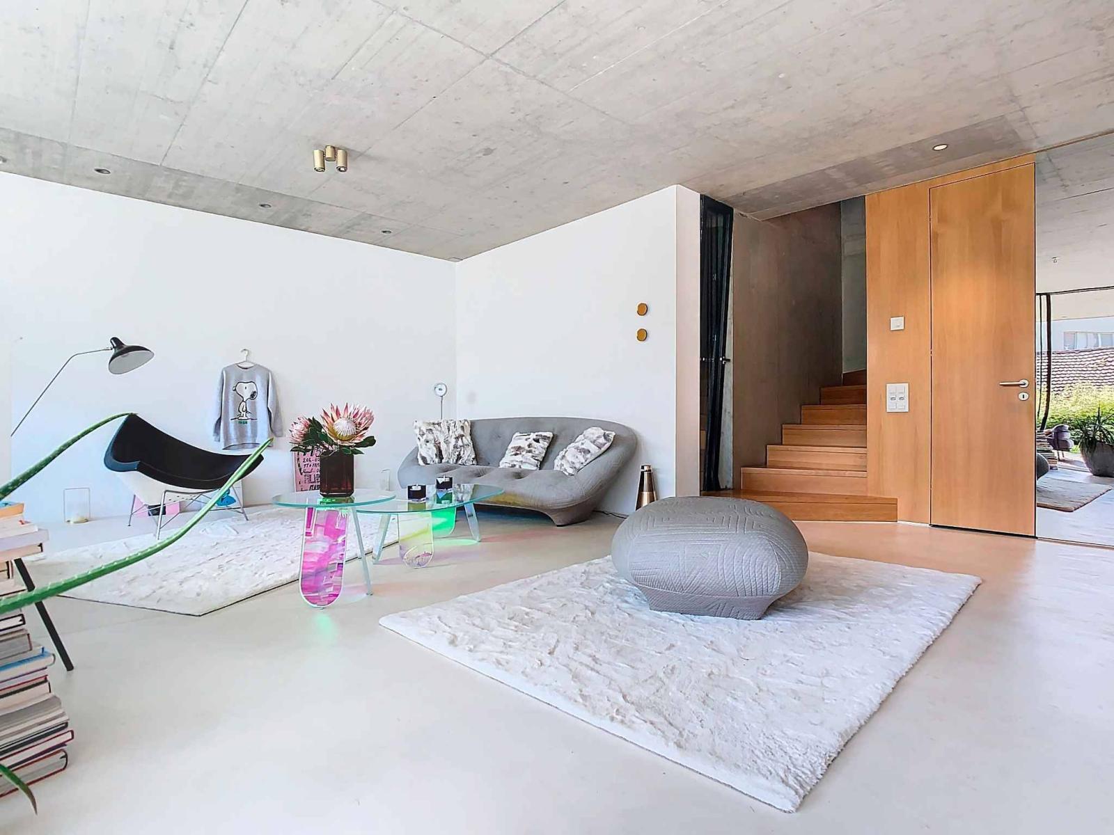 Die 2017 erbaute und Minergie-zertifizierte Architektenwohnung fügt sich perfekt in die umgebende Landschaft ein. Der zeitgenössische Stil fügt sich auf natürliche Weise in seine elegante Ästhetik ein, mit großen Erkerfenstern, die viel Licht in das Haus lassen. Die Innenausstattung zeichnet sich durch nüchterne und sanfte Farbtöne und authentische, sorgfältig ausgewählte Materialien aus.