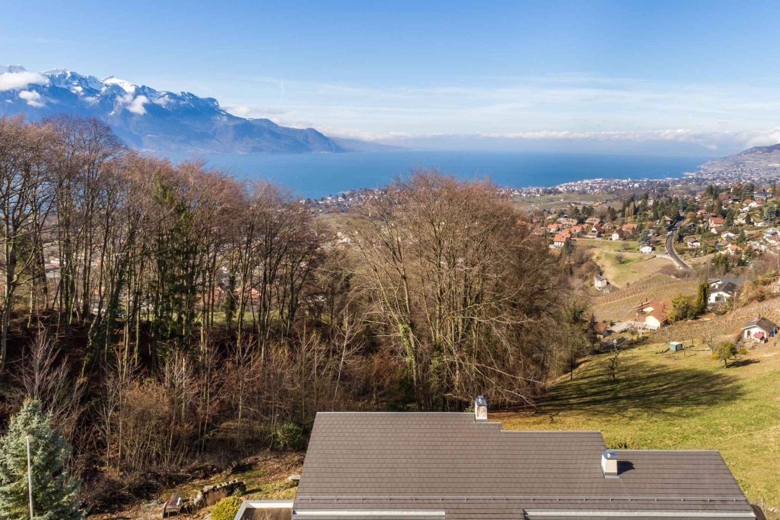 Hervorragendes, modernes Einfamilienhaus in einer ruhigen und sehr privaten Gegend in Brent, in der Stadt Montreux. Dieses Anwesen bietet einen atemberaubenden Blick auf den See und die Berge und ist gleichzeitig vor neugierigen Blicken geschützt.