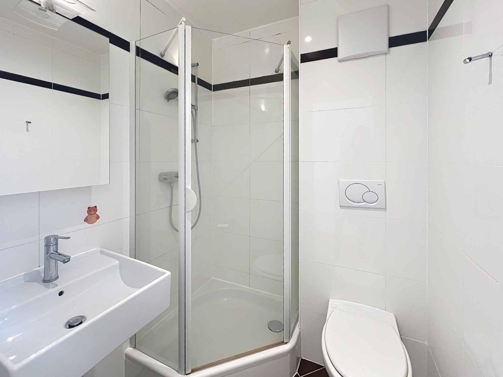 Diese sehr helle Unterkunft verfügt über eine Eingangshalle mit Kleiderschränken, ein Wohn-/Esszimmer mit Zugang zum Balkon, eine voll ausgestattete Küche, drei Schlafzimmer, von denen zwei Zugang zu einem der Balkone haben, sowie ein Badezimmer mit Wäschesäule und ein Duschbad.