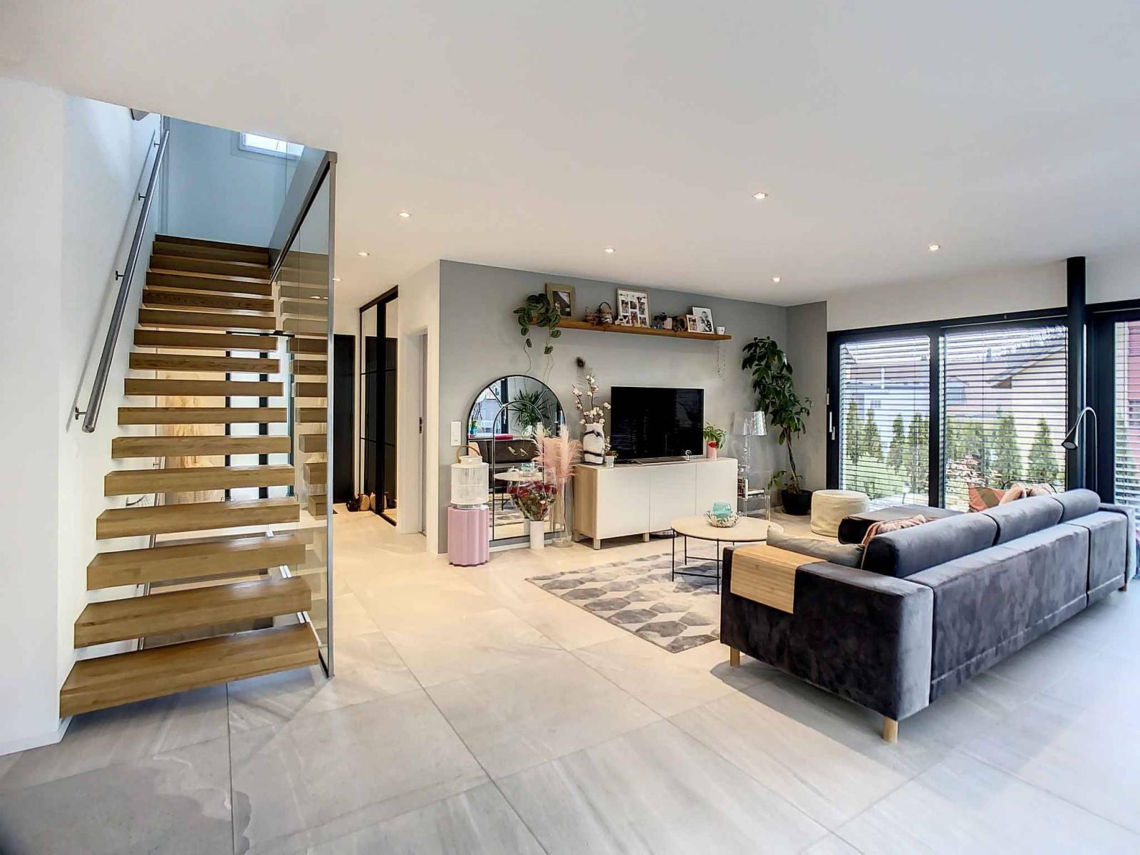 Diese 2020 erbaute 6,5 Zimmer-Doppelhaushälfte bietet Ihnen ein ideales Wohnumfeld auf den Höhen von Neuenburg. Es vereint Modernität und Komfort mit zeitgenössischer Architektur, die perfekt in die natürliche Umgebung integriert ist.