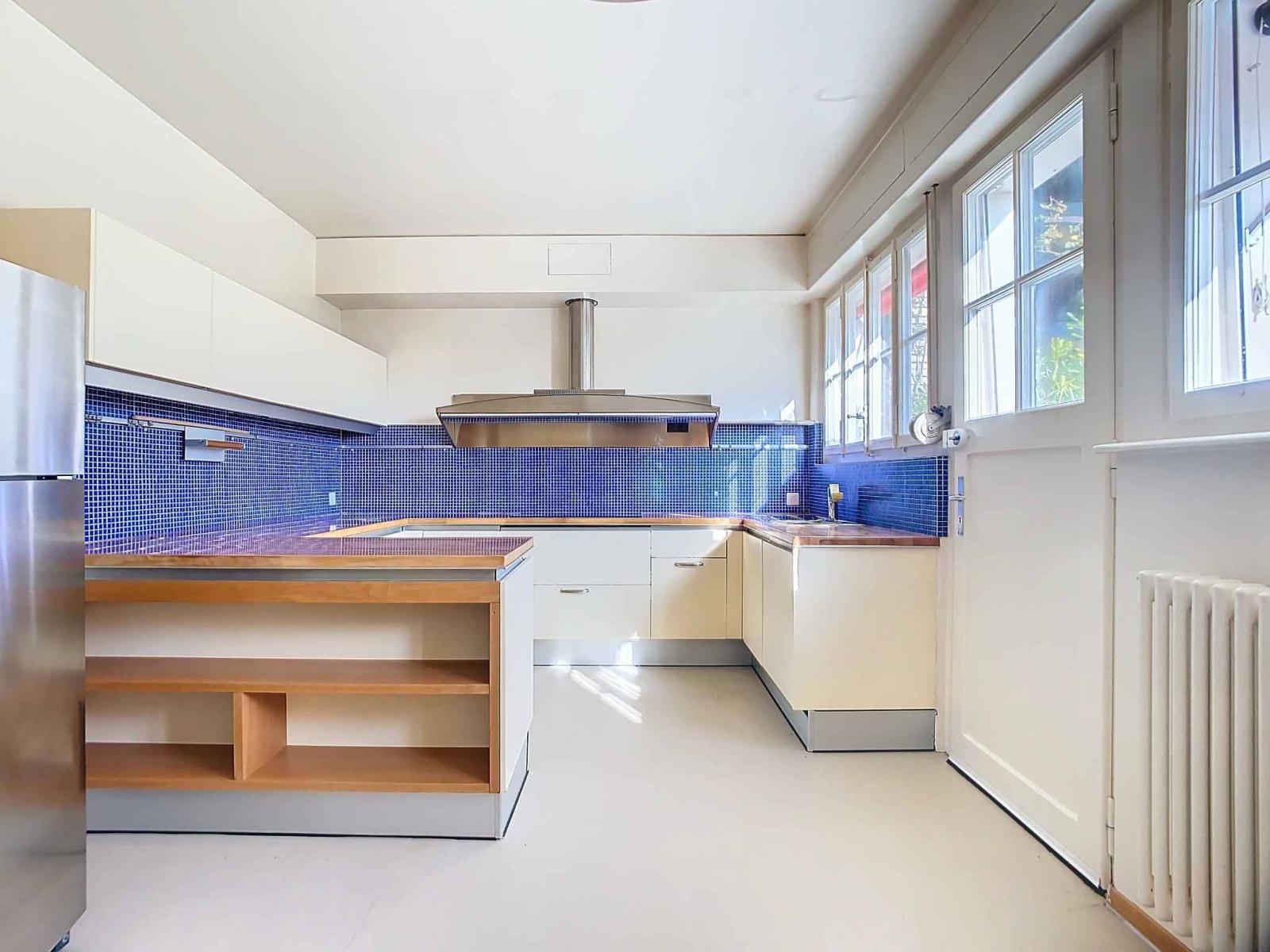 Das 1950 erbaute Haus spiegelt die architektonischen Regeln dieser Zeit wider: wohlproportionierte Volumen, funktionale Raumaufteilung und große Öffnungen nach außen. Es ist auf drei Wohnebenen organisiert und verfügt über eine großzügige, gut aufgeteilte Wohnfläche von 250 m².