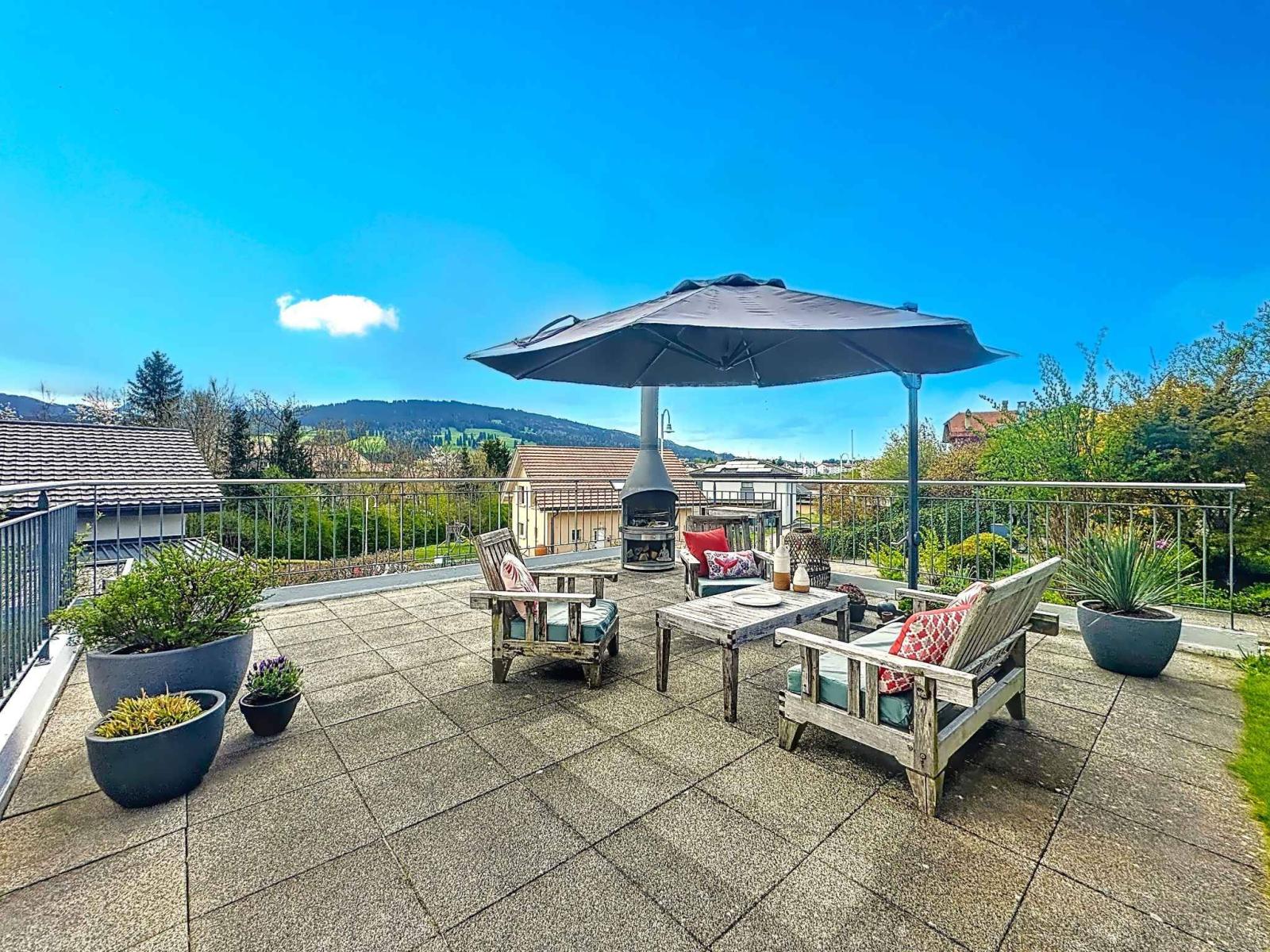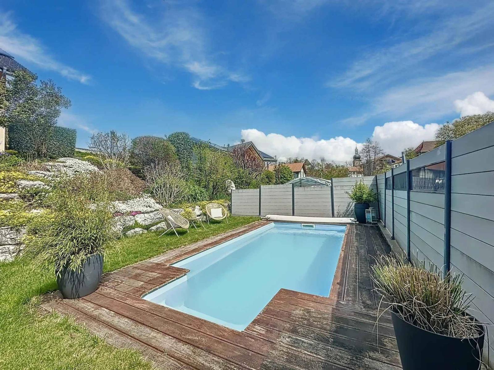 Im Außenbereich sorgen mehrere Terrassen sowie ein in den Boden eingelassener, mit einer Wärmepumpe beheizter Swimmingpool dafür, dass Sie die schönen Tage in angenehmer Atmosphäre genießen können. Das Untergeschoss bietet einen Keller, eine Waschküche und einen zusätzlichen Raum, der derzeit in einen Ruhe- und Fernsehraum umgewandelt wurde.