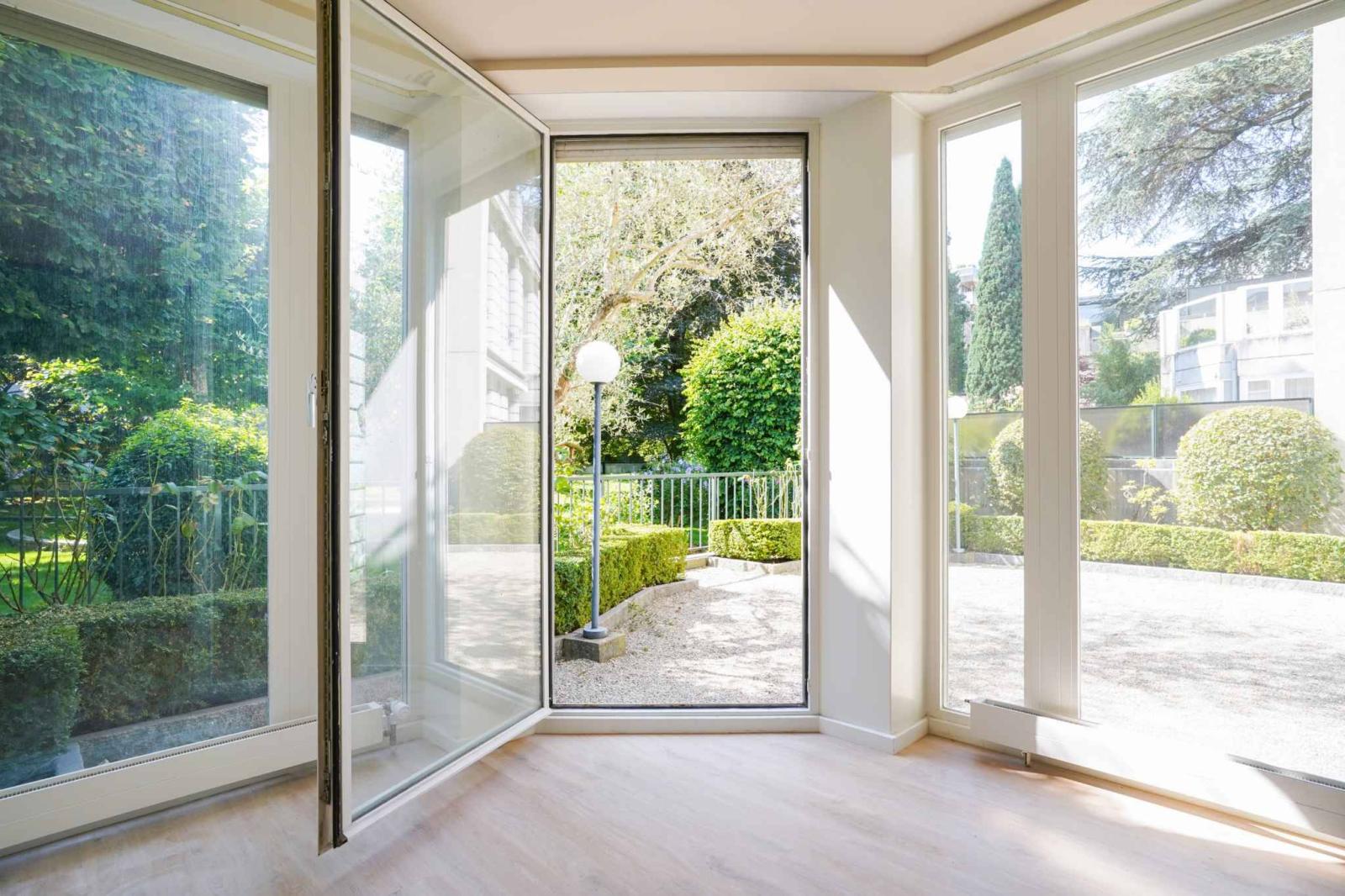 Das Erdgeschoss besteht aus einer Wohnfläche von über 150 m² mit Zugang zum privaten Garten von über 55 m², gegenüber dem Park der Residenz.