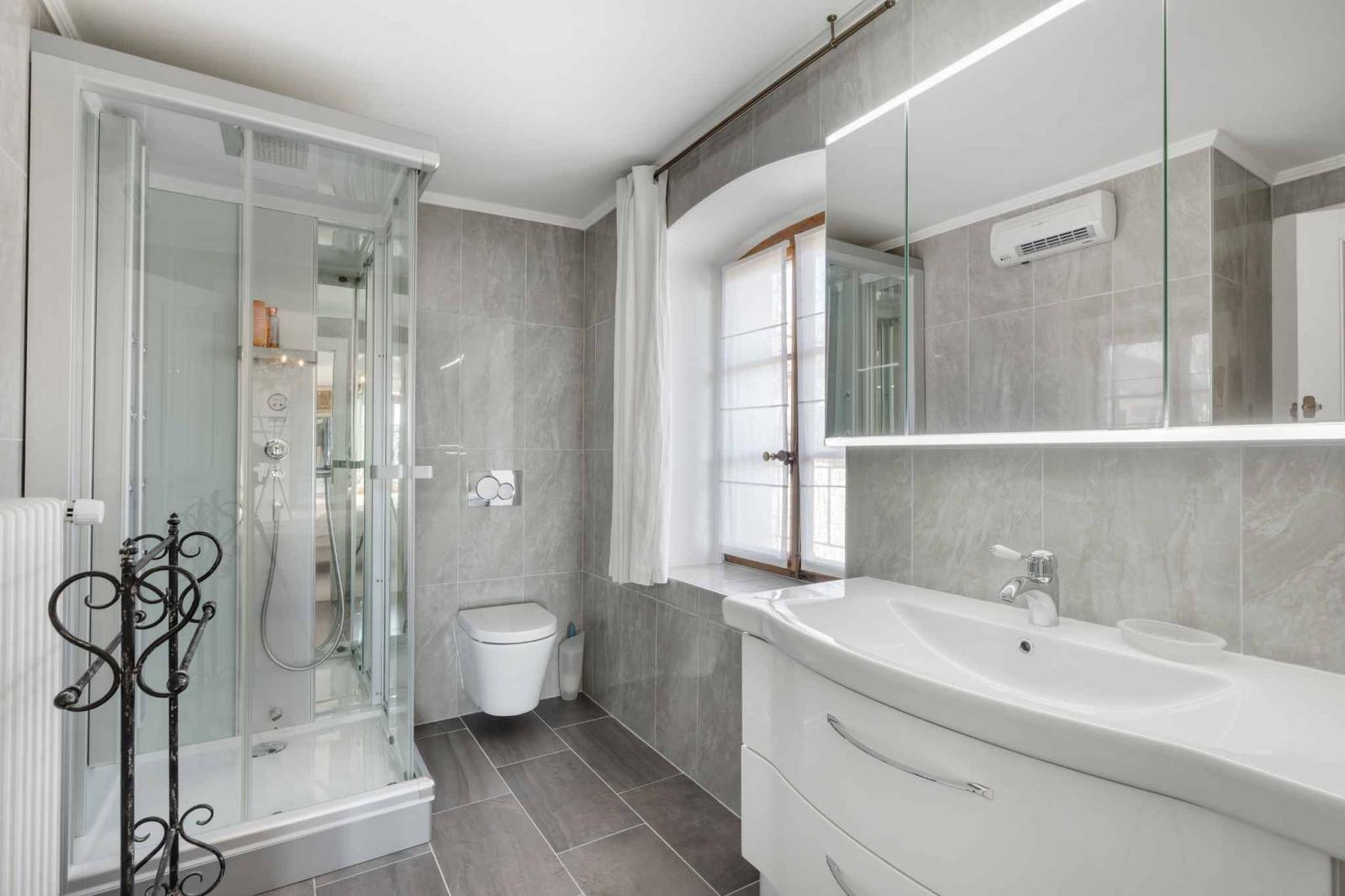 Eine überdachte Garage und zwei Außenstellplätze runden dieses außergewöhnliche Anwesen ab.