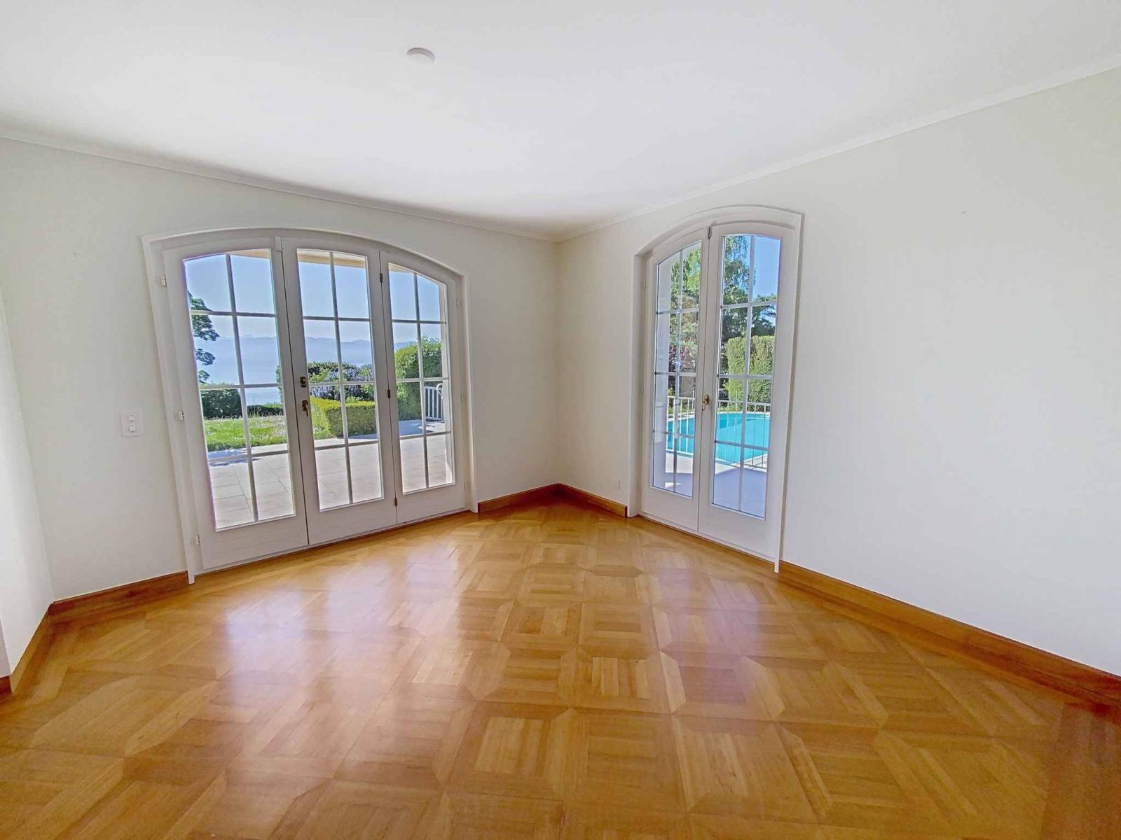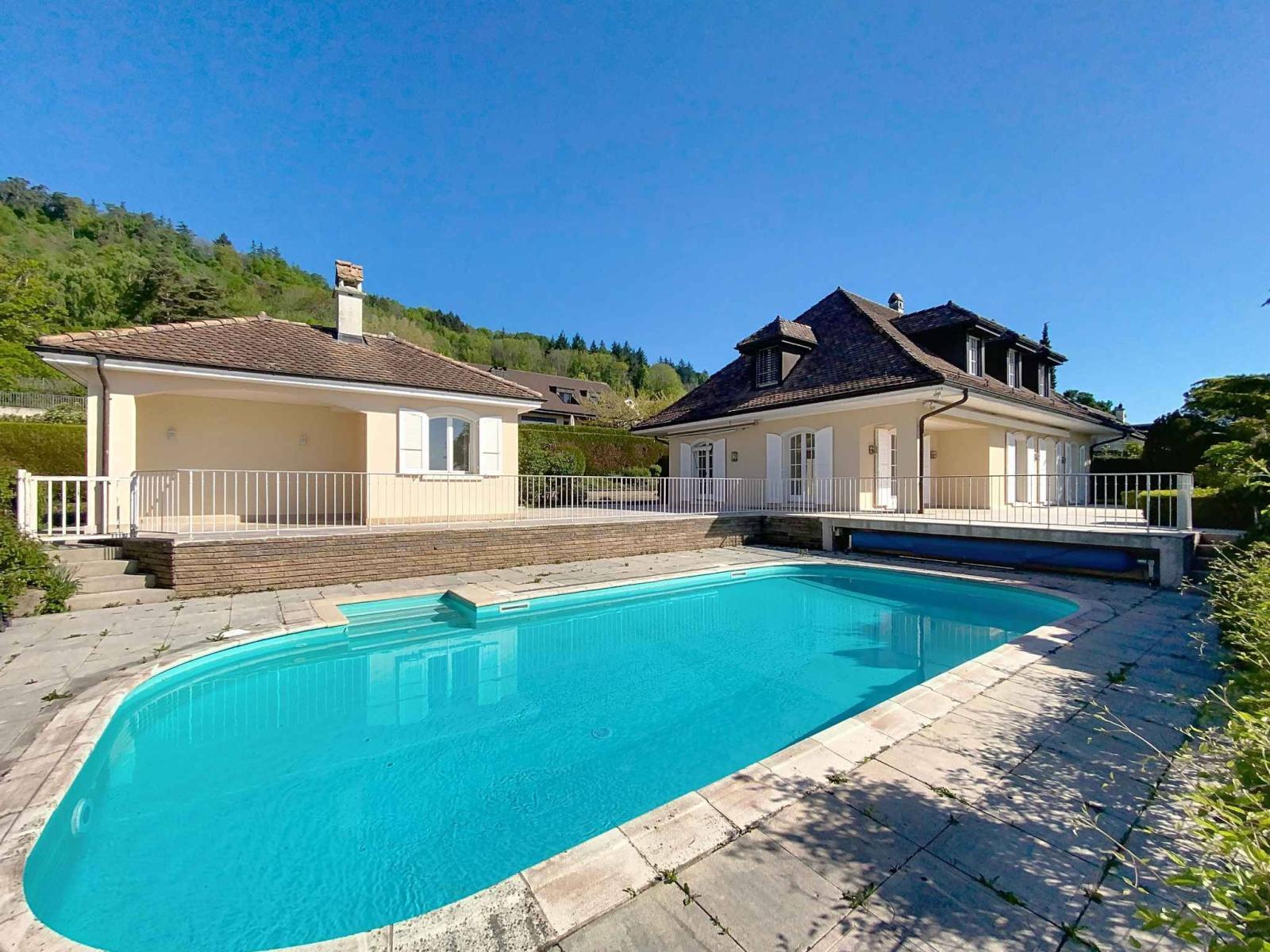 Diese Villa im klassischen Stil liegt in ruhiger Umgebung im schweizerischen Bougy-Villars und genießt eine erstklassige Lage mit freiem Blick auf den Genfer See und die Alpen. Auf drei Ebenen – zwei Stockwerke und ein vollständig ausgebautes Untergeschoss – vereint dieses Anwesen Eleganz, Komfort und Zweckmäßigkeit.