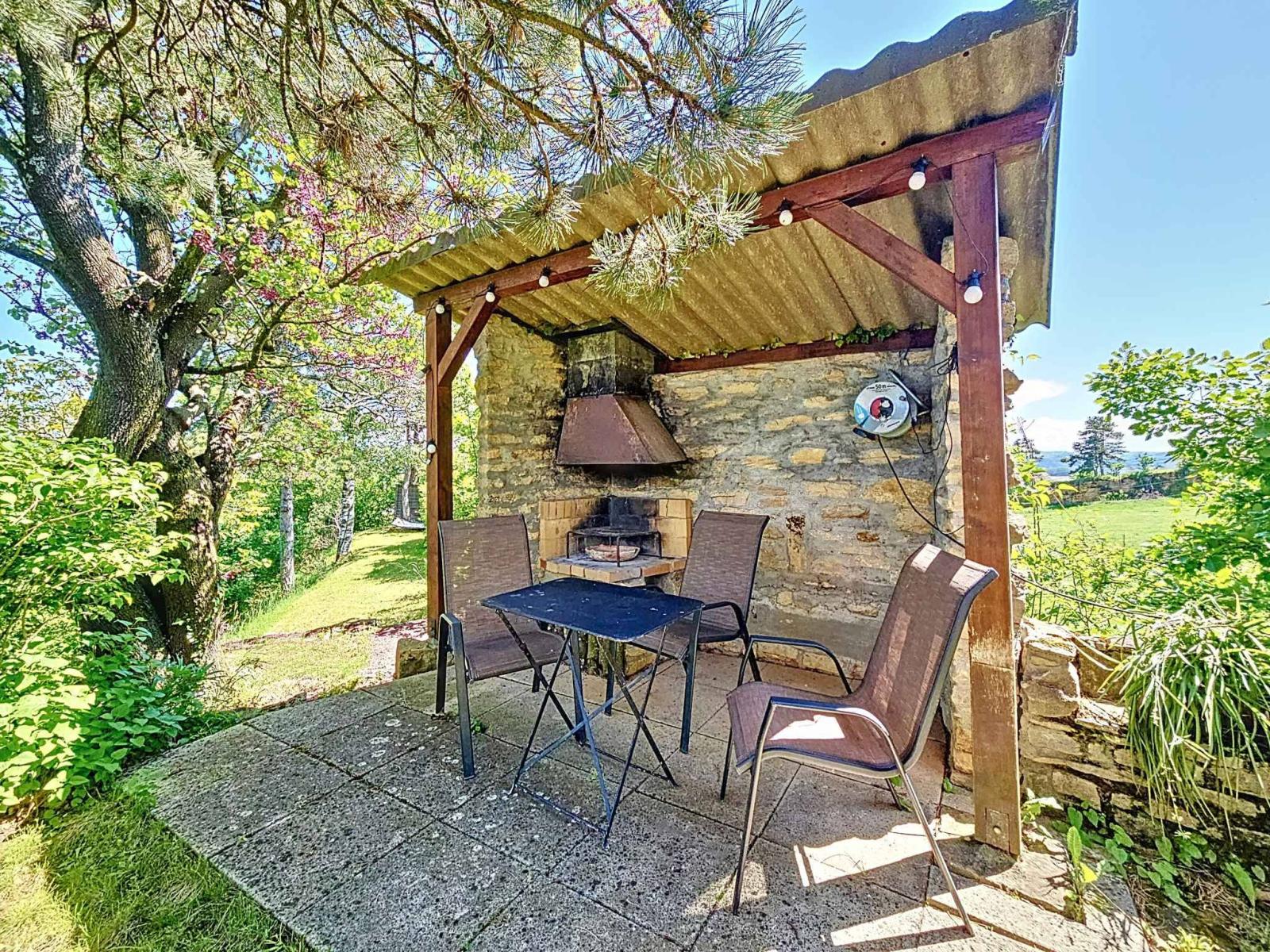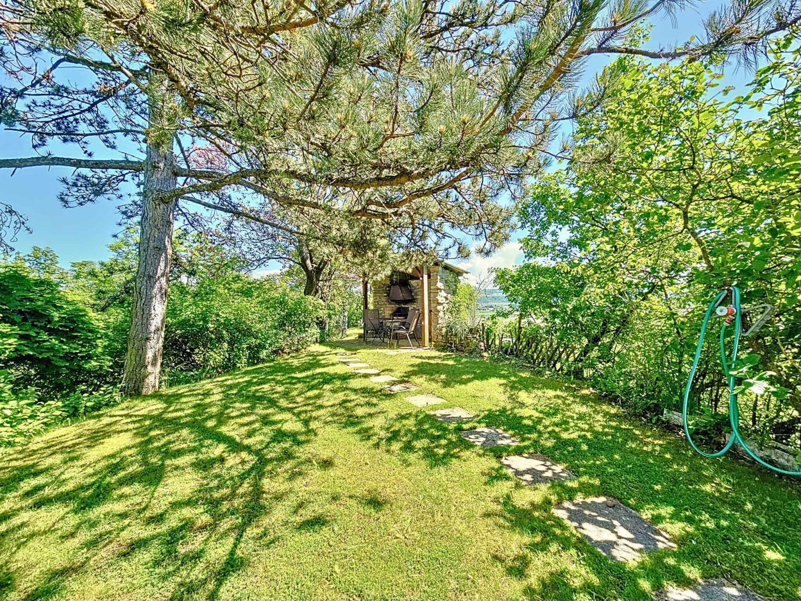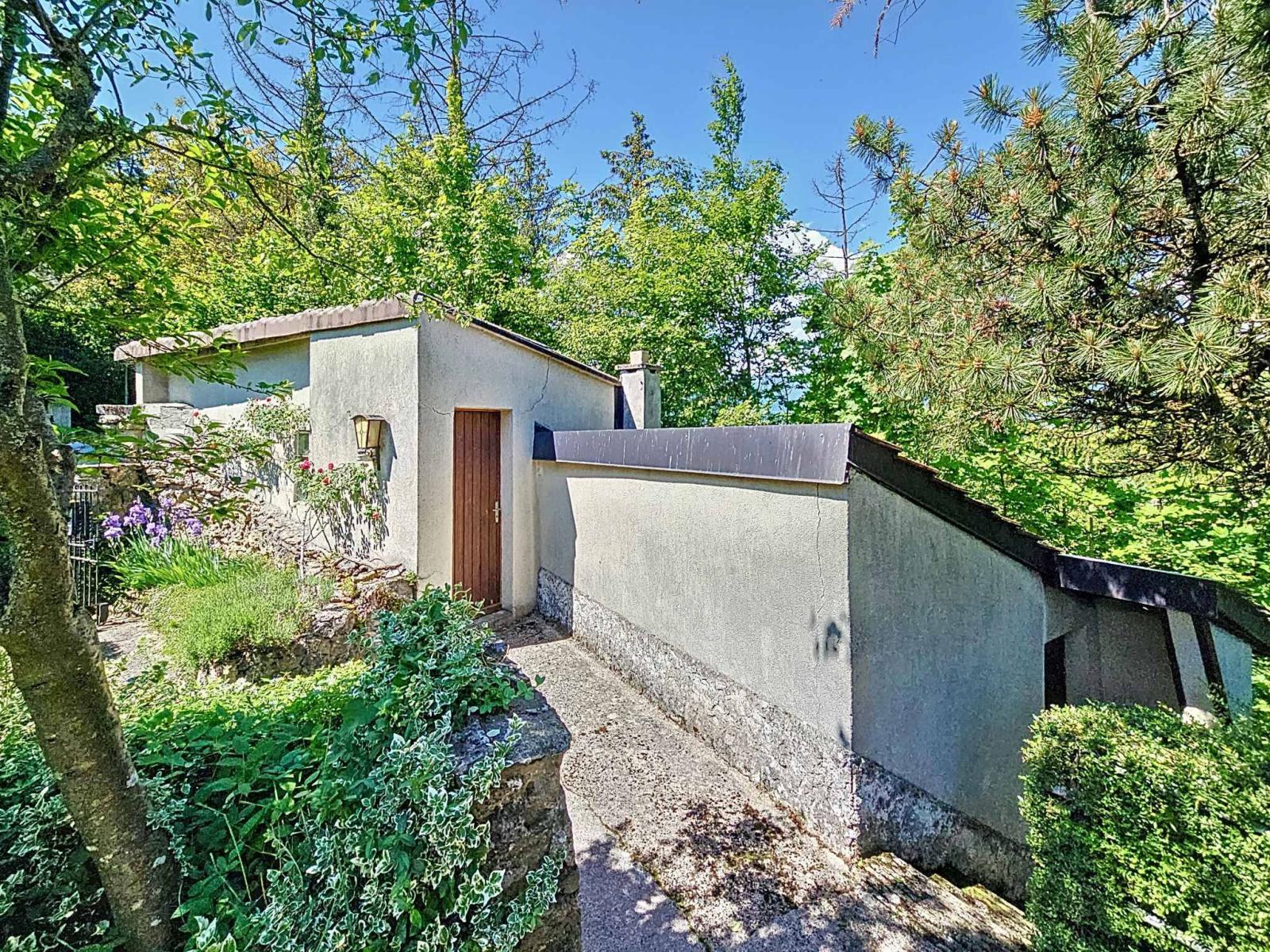 Draußen bietet eine große Terrasse Zugang zu einem weitläufigen, bewaldeten Garten mit Schuppen. Eine Garage, ein Holzlagerraum und ein Weinkeller runden das Anwesen ab.