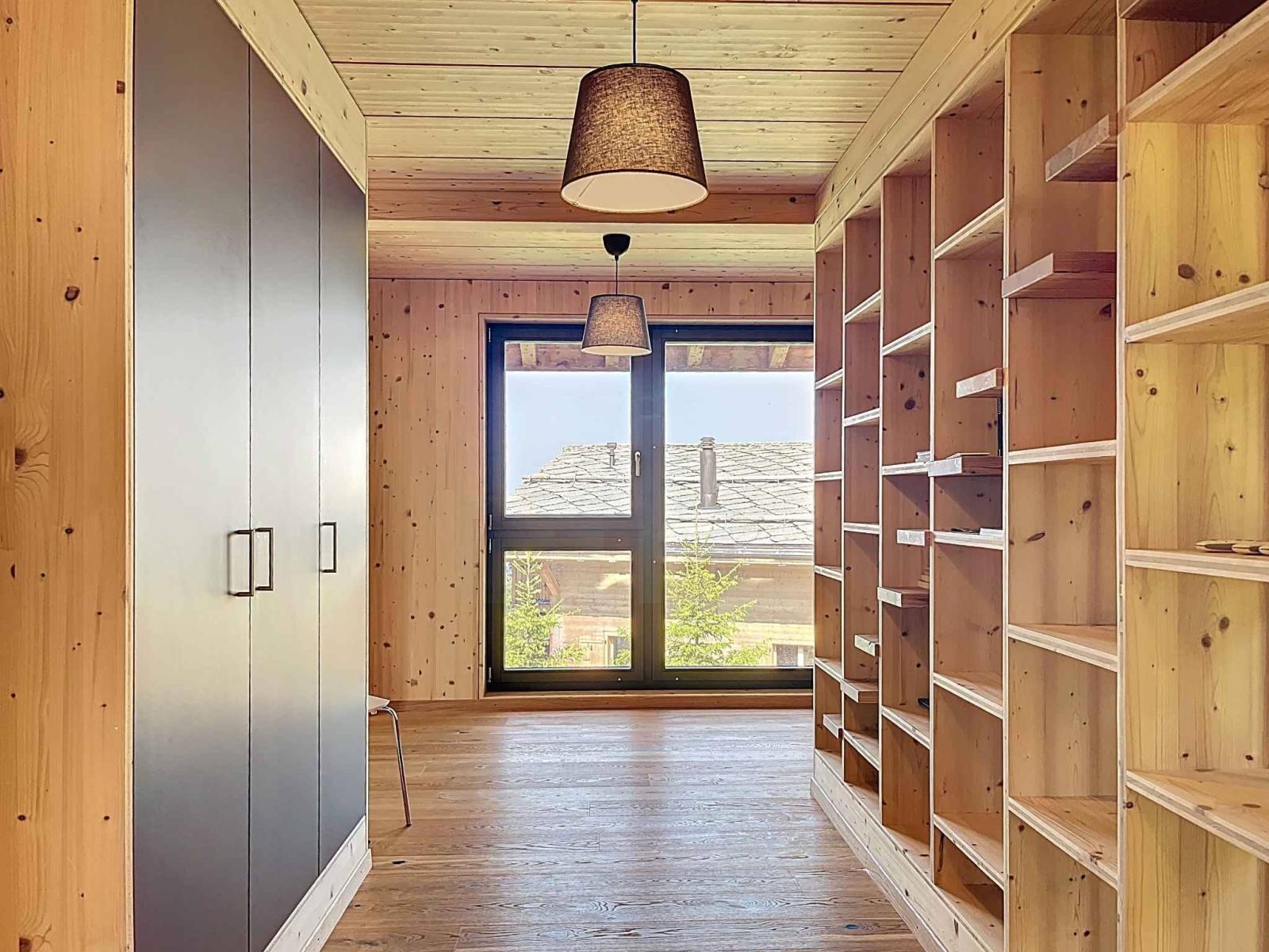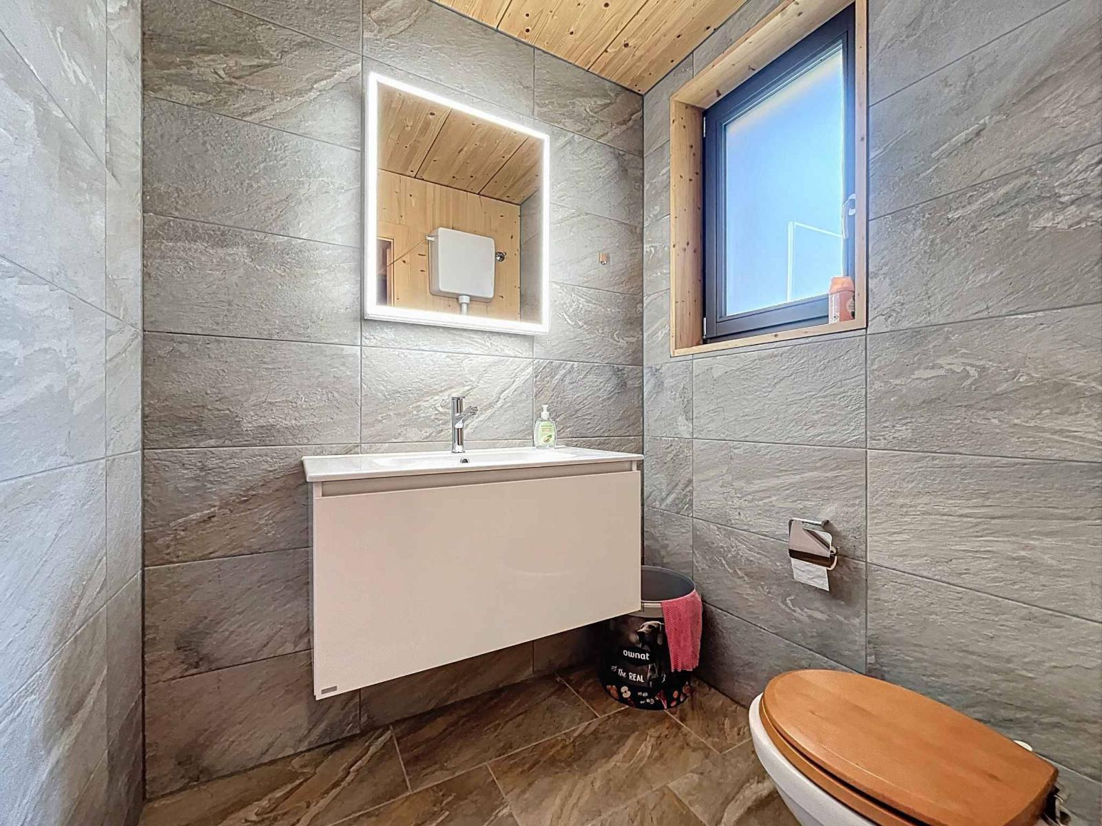 Côté énergie, le chalet offre une excellente efficacité, notamment grâce à la pompe à chaleur, aux panneaux solaires et au triple vitrage.