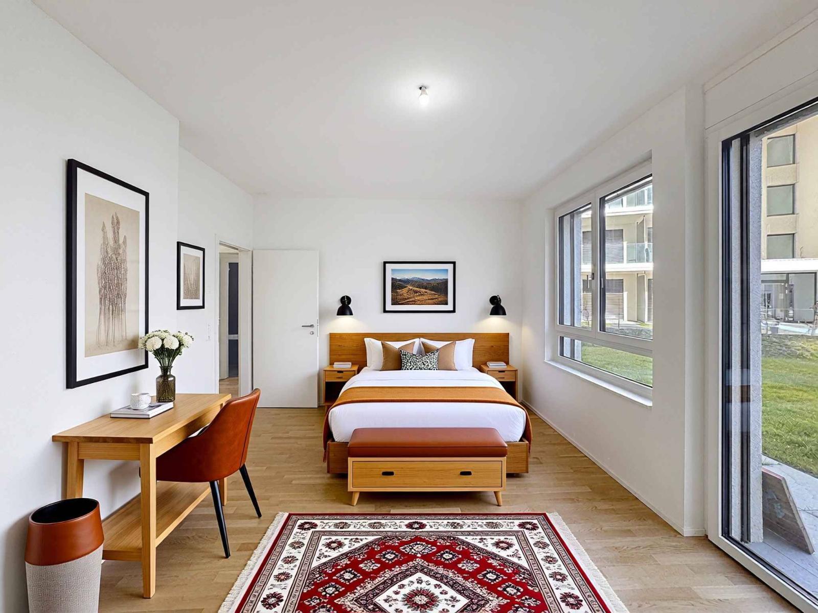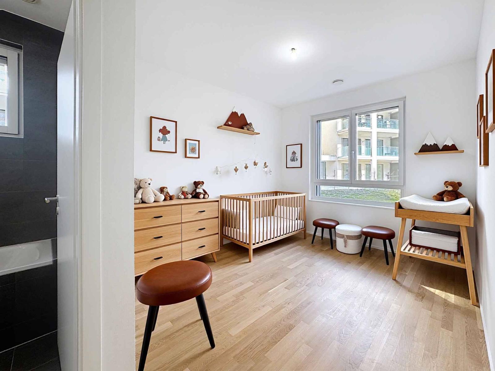 Es umfasst acht energieeffiziente Gebäude mit klarer, moderner Architektur. Mit insgesamt 191 geräumigen und komfortablen Apartments – von Studios bis hin zu 4,5-Zimmer-Wohnungen – finden Sie hier garantiert Ihr zukünftiges Zuhause!