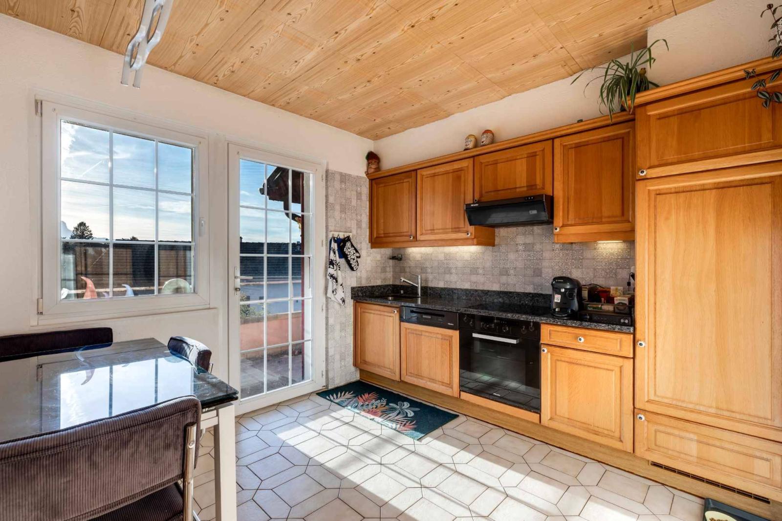 Es ist derzeit in zwei Wohnungen aufgeteilt, was die Möglichkeit bietet, auf einfache Weise Mieteinnahmen zu generieren.