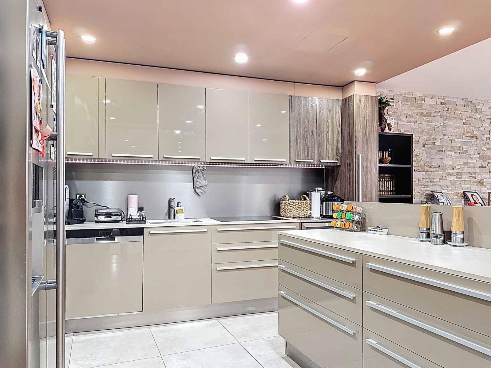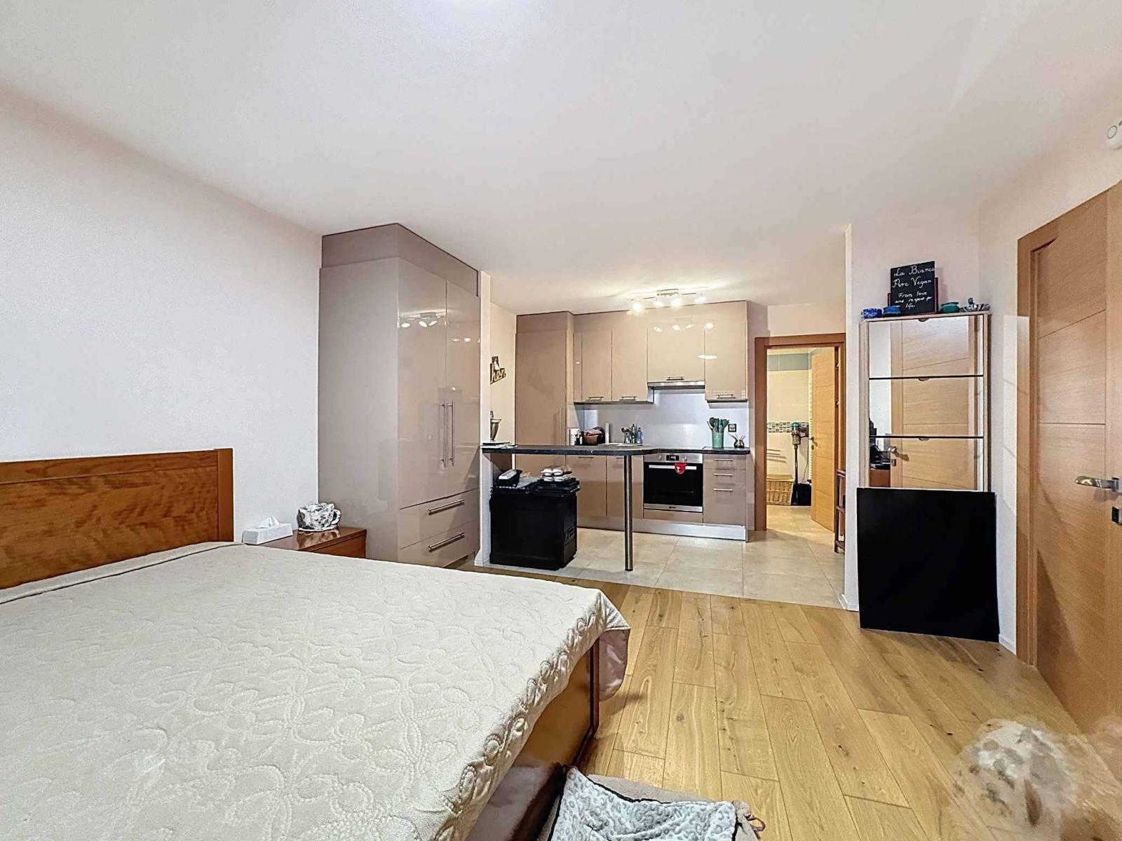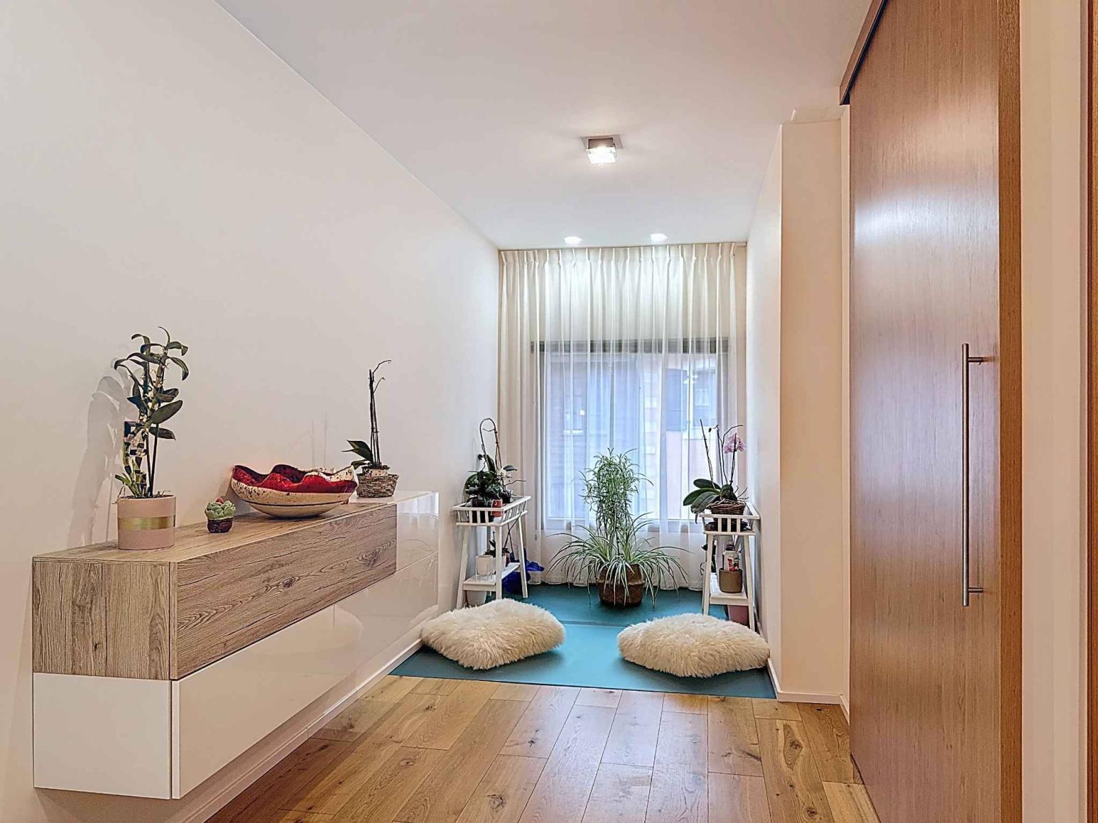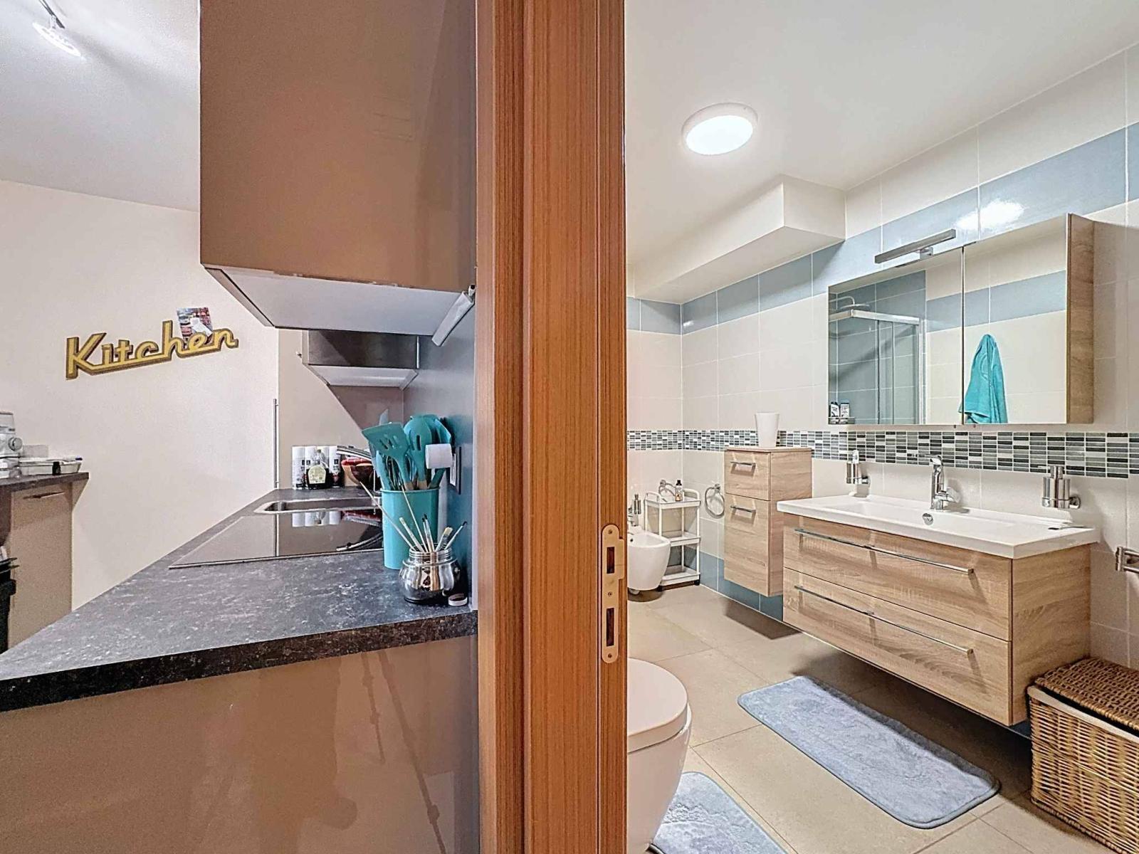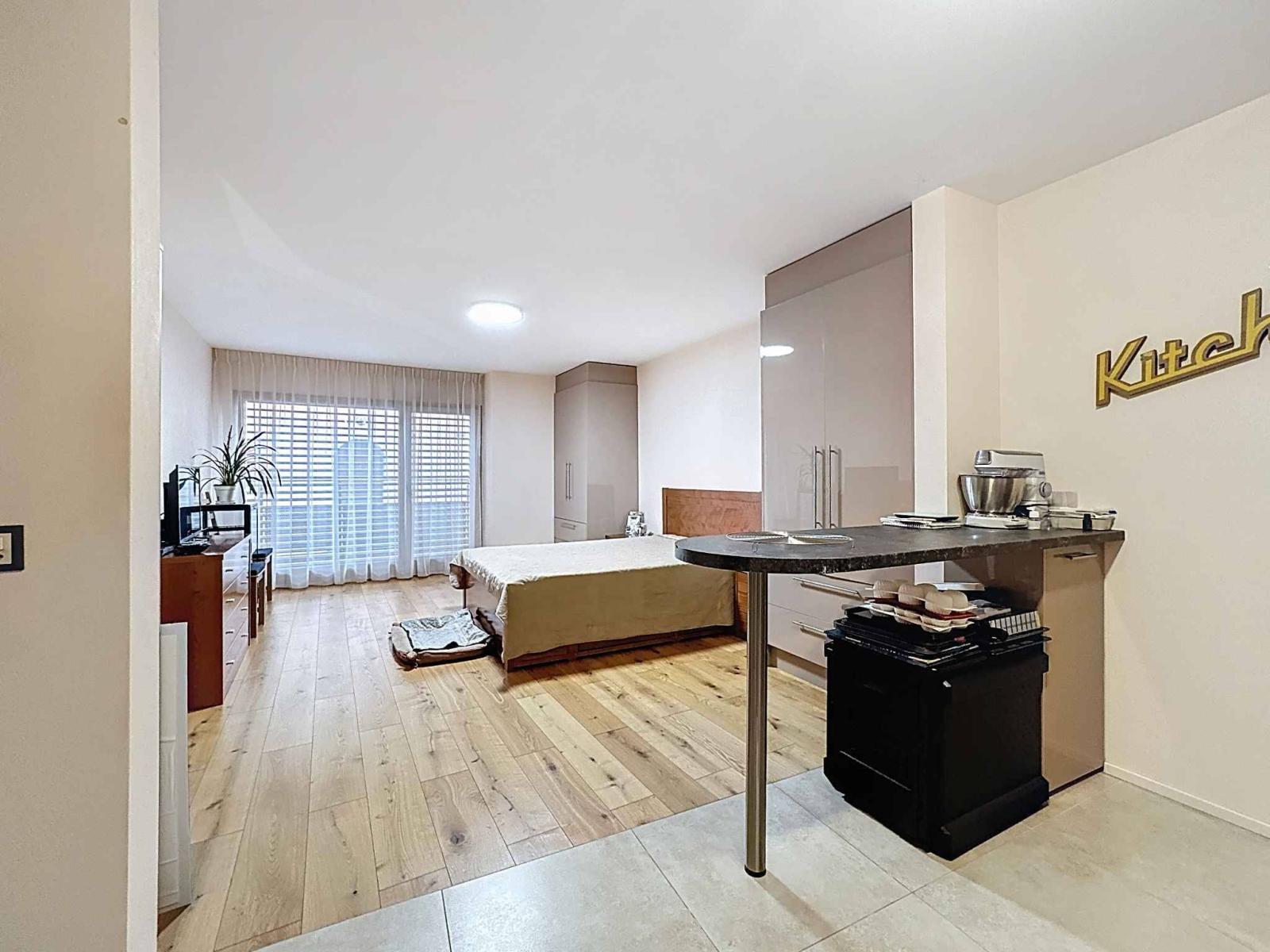 Im Erdgeschoss befindet sich ein separates Studio mit Küche und Duschraum sowie ein funktionaler Waschraum.