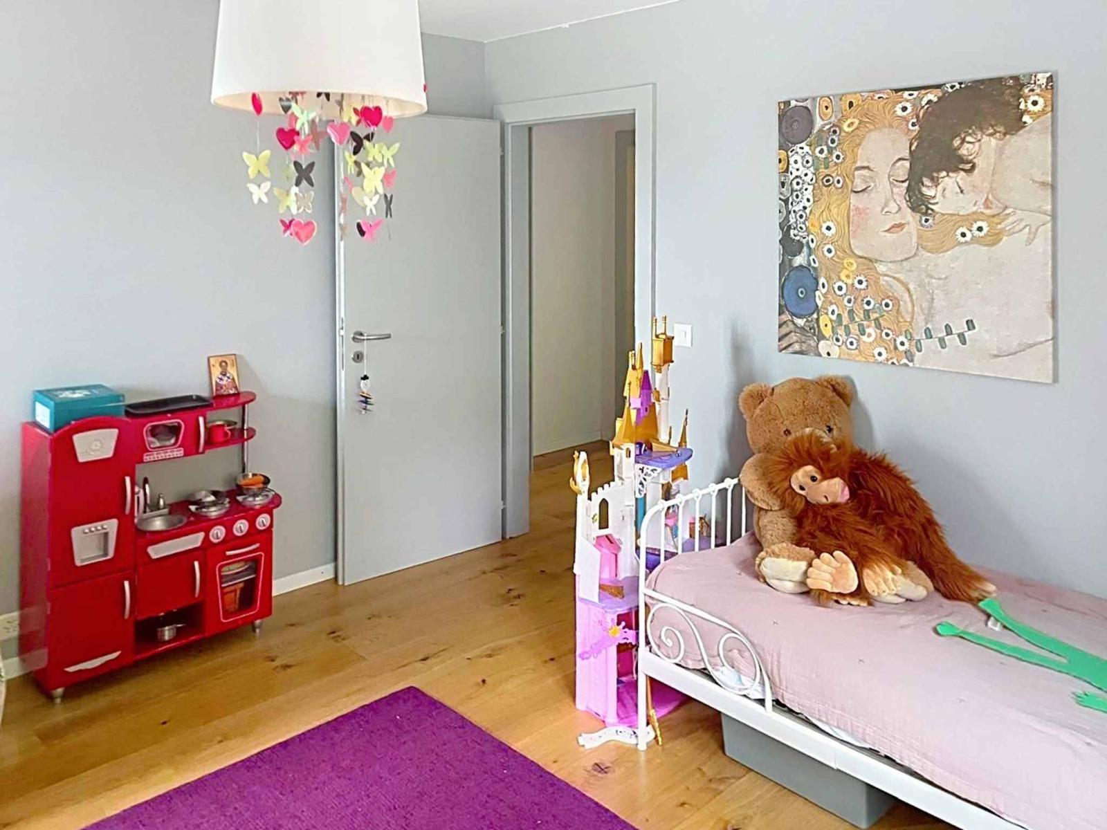 Im Obergeschoss befindet sich eine Galerie mit Fernsehlounge und Zugang zum Balkon, die den Blick auf das Wohnzimmer freigibt und zu zwei Schlafzimmern führt. Ein separater Eingang, ein Arbeitsbereich, ein Badezimmer mit Dusche und ein separates WC vervollständigen diese Etage.