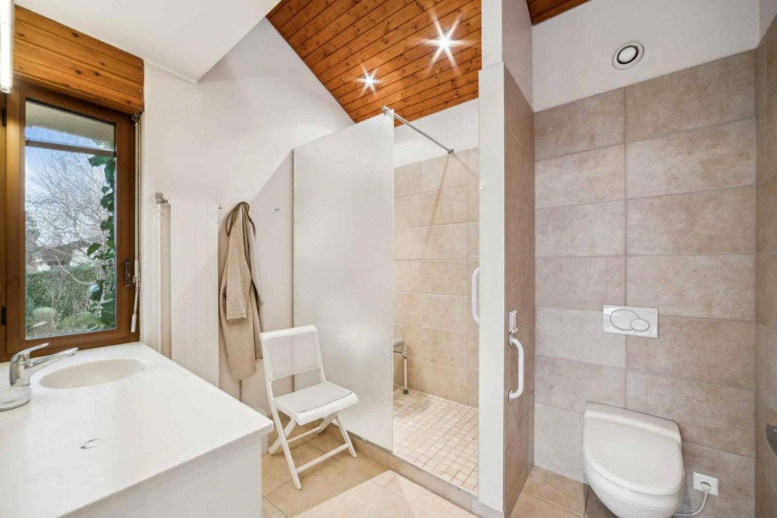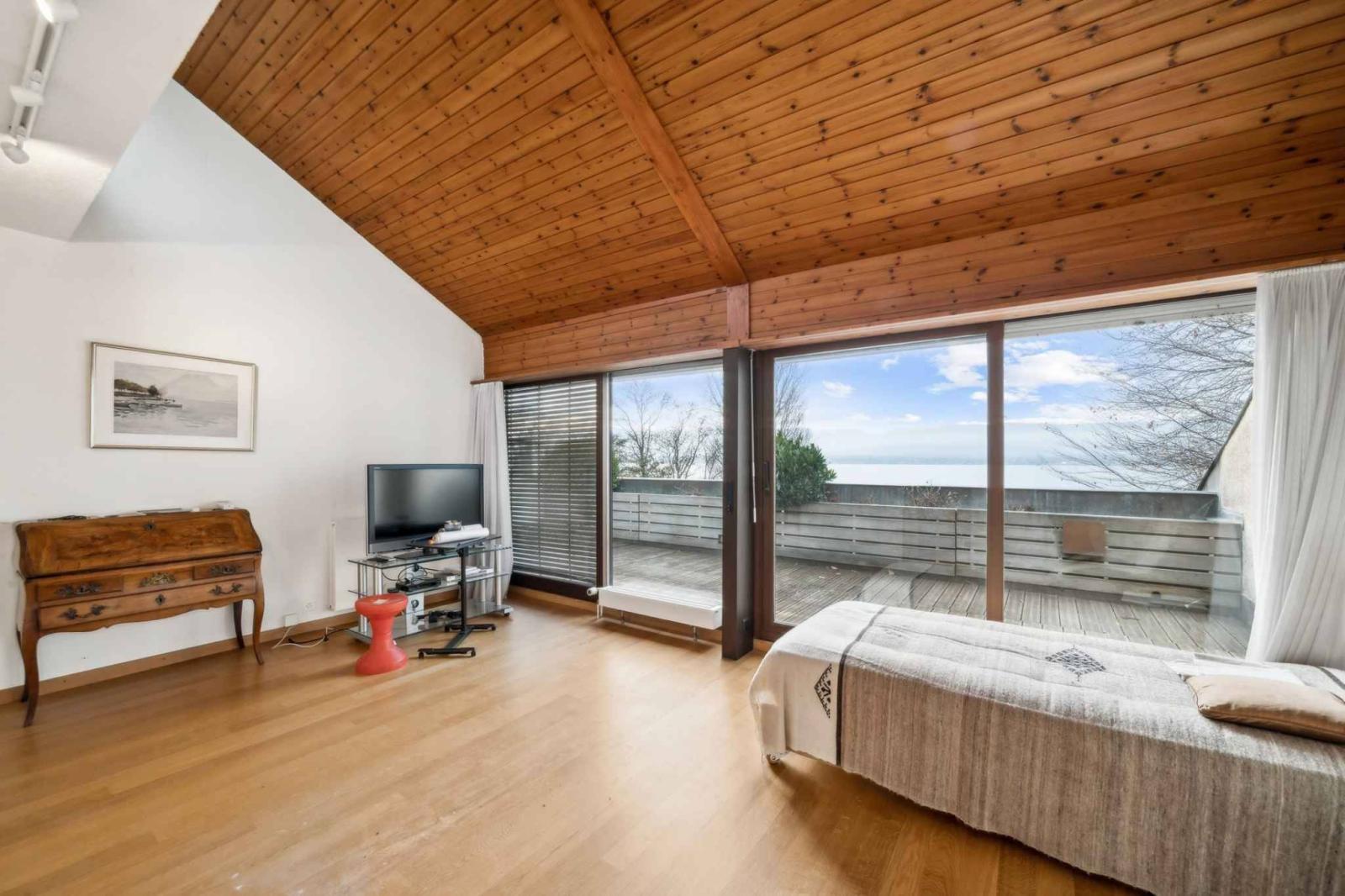 Mit eigenem Strand und Ponton, ergänzt durch eine Bootsgarage und eine Anlegeboje, bietet es direkten Zugang zum Genfersee.