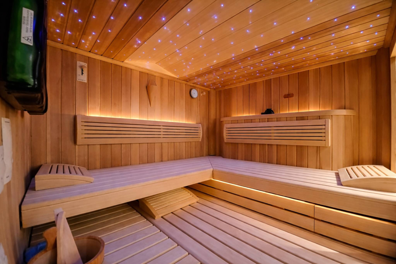 Ein separater Wellnessbereich rundet das Angebot ab und umfasst ein Hallenbad mit Zugang nach draußen, eine Sauna und einen Ruheraum mit Duschraum.
