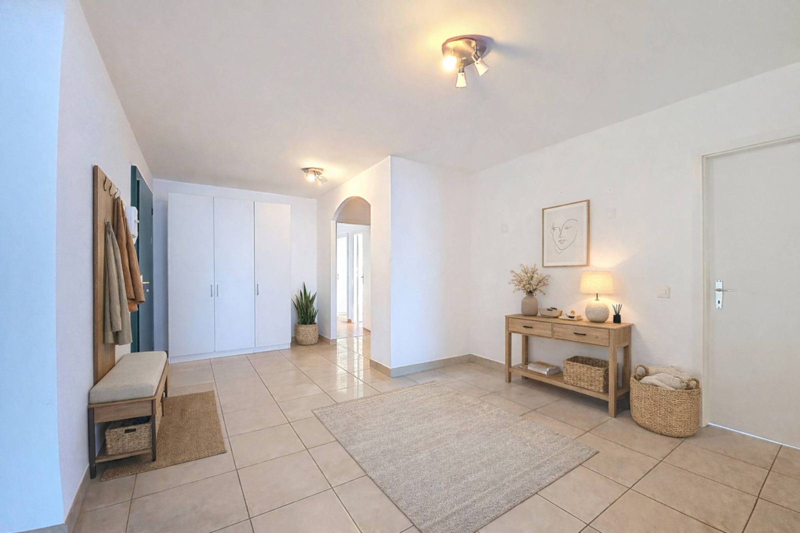 - Eine große Eingangshalle; - Ein geräumiges Wohn-/Esszimmer; - Eine Küche; - Zwei Schlafzimmer; - Ein Duschraum / WC; - Eine Schlafzimmersuite mit Ankleidezimmer und Badezimmer/WC.