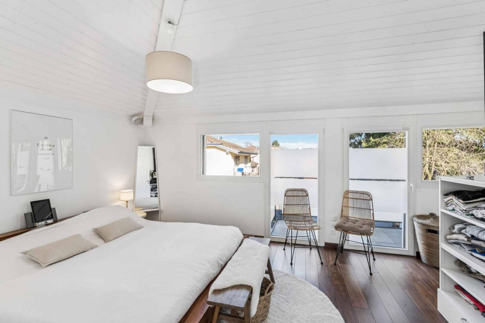 Im Obergeschoss befinden sich drei Schlafzimmer, darunter ein Hauptschlafzimmer mit eigenem Duschbad und Balkon. Zwei weitere große Schlafzimmer und ein Badezimmer vervollständigen diese Etage.