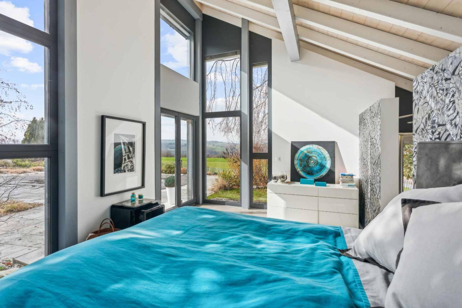 Die Villa zeichnet sich durch ihre offenen Raumkonzepte und großen Glasflächen aus, die den ganzen Tag über für natürliches Licht sorgen.