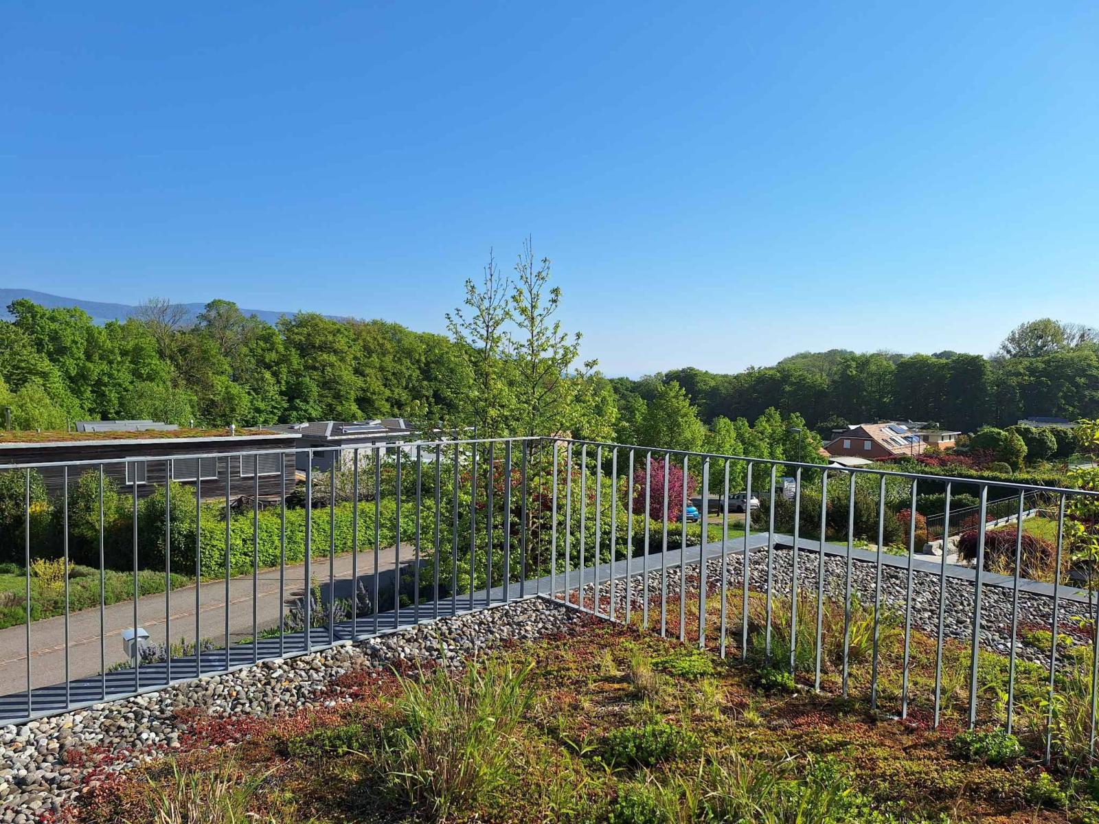 Das Anwesen präsentiert sich als grüne Oase mit einem sorgfältig angelegten Garten, der mit einer Vielzahl von Bäumen bepflanzt ist. Der Garten umfasst eine Wildblumenwiese, ein Hochbeet und weitere landschaftsgestalterische Elemente. Zudem bietet das Anwesen verschiedene Entspannungsbereiche im Freien, darunter eine großzügige, nach Süden ausgerichtete Terrasse von ca. 52 m², einen 24 m² großen Balkon, eine weitere 24 m² große Terrasse über der Garage und eine Pergola von ca. 40 m². So können die Bewohner die Umgebung den ganzen Tag über in vollen Zügen genießen (insgesamt ca. 140 m² Terrassenfläche).