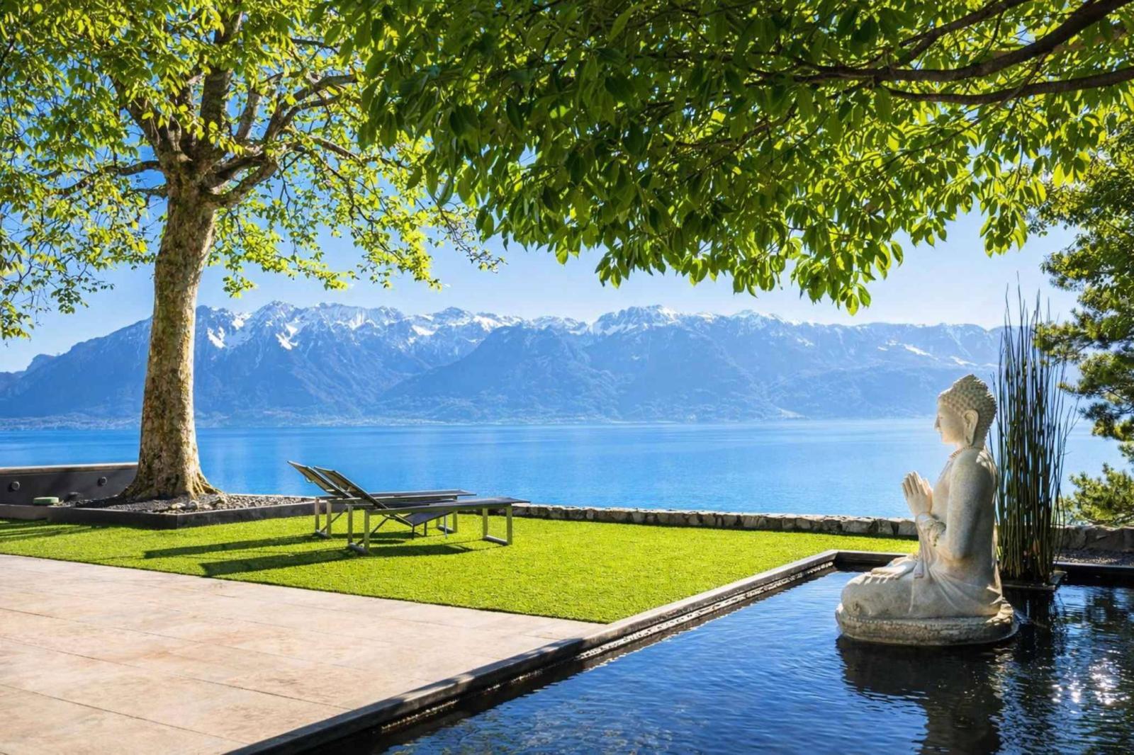 Dominante Lage, keine Belästigung, keine Einblicke, keine mögliche zukünftige Bebauung: Der Blick auf den Genfersee und die Alpen ist dauerhaft geschützt.