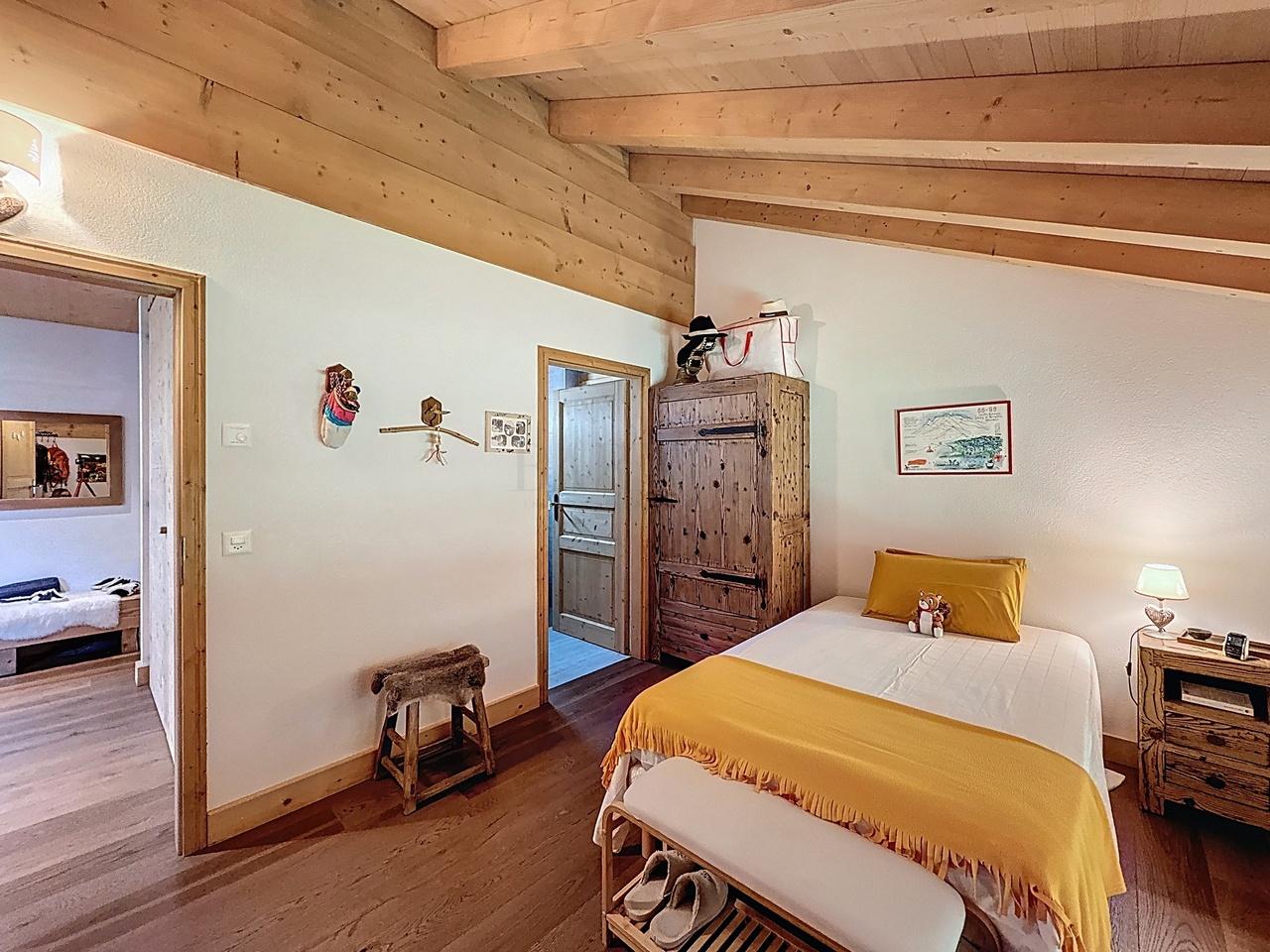 Dieses helle Duplex-Apartment befindet sich in einem eleganten Chalet mit Aufzug, der einen direkten Zugang vom Garage ermöglicht, und vereint Komfort und Eleganz.