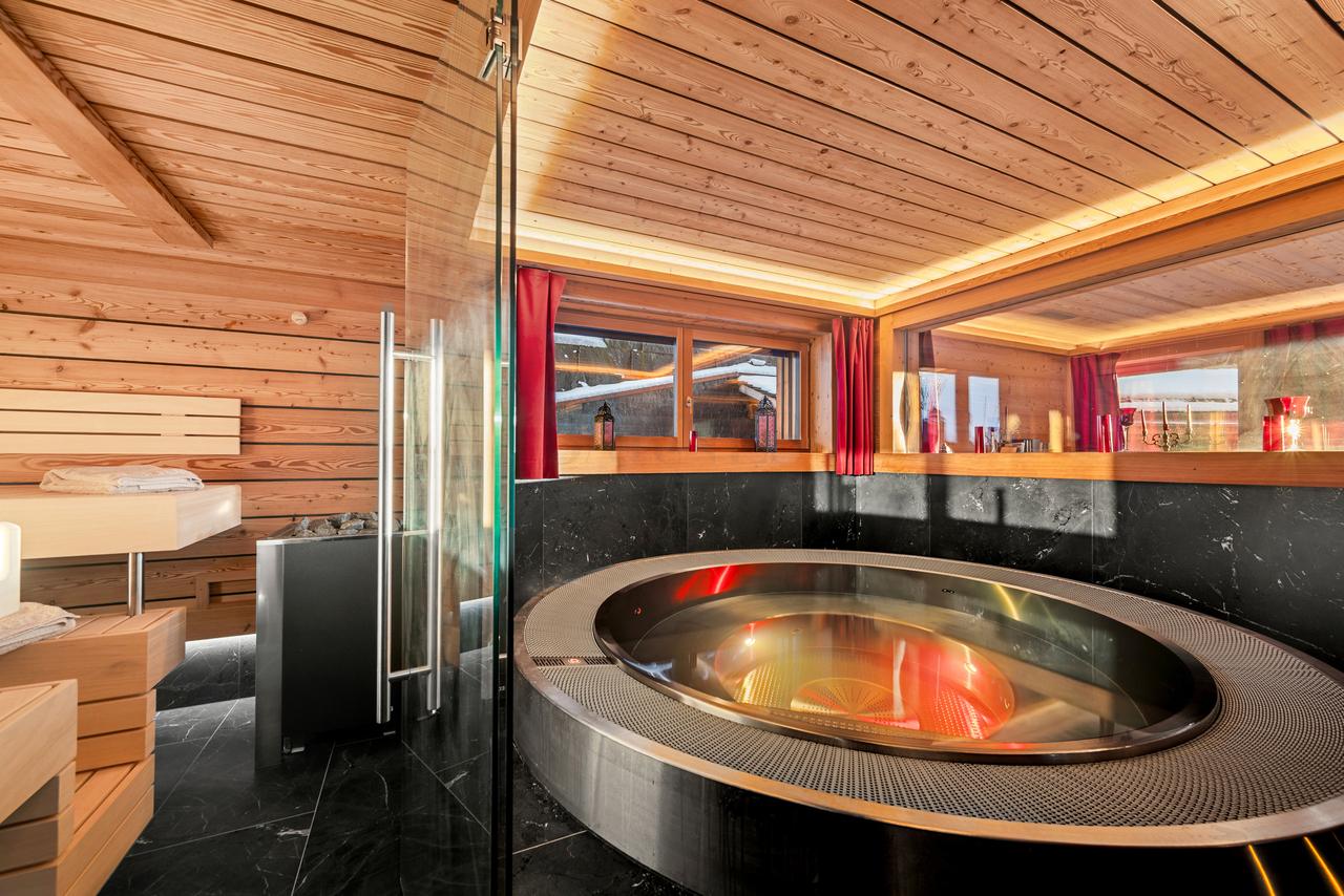 Das 650 Quadratmeter große Haupthaus besticht durch handgeschnitzte Massivholzbalken, moderne Hausautomation, einen Aufzug und luxuriöse Wellness-Einrichtungen wie Innenpool, Sauna und Fitnessbereich. Es umfasst zudem sieben elegant eingerichtete Suiten und großzügige Wohnbereiche. Als Herzstück des Anwesens begeistert es mit seinen großzügigen Dimensionen, der fließenden Raumgestaltung und der außergewöhnlichen Qualität seiner Ausstattung. Es verkörpert einen exklusiven alpinen Lebensstil, der höchsten Komfort und Eleganz vereint.