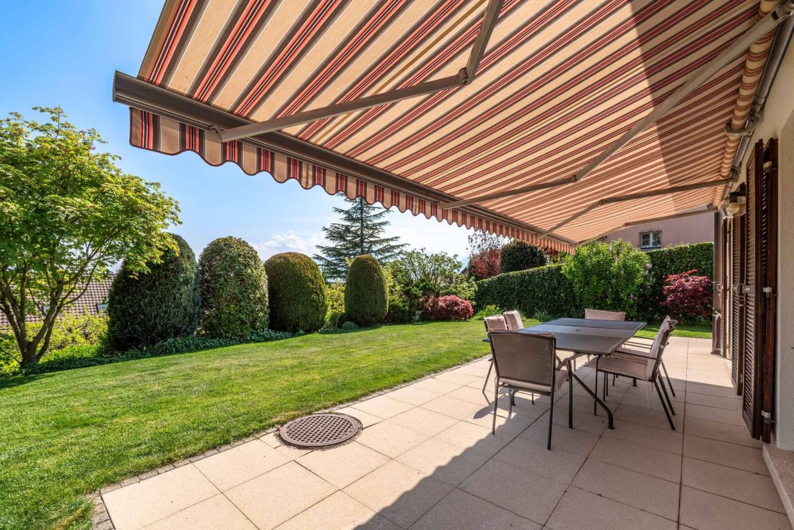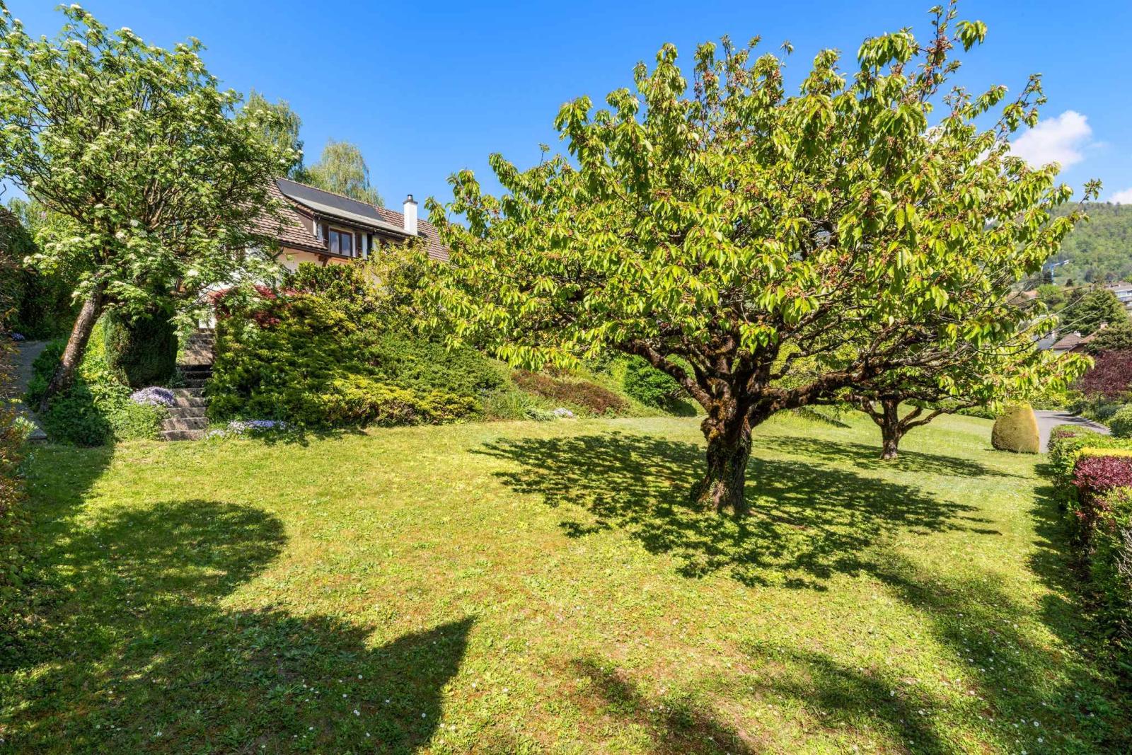 Im Außenbereich bietet ein prächtiger, ca. 562 m² großer Privatgarten mit Bäumen, der sorgfältig gepflegt wird, eine grüne und geschützte Umgebung, ideal, um die schönen Tage in vollkommener Ruhe zu genießen.
