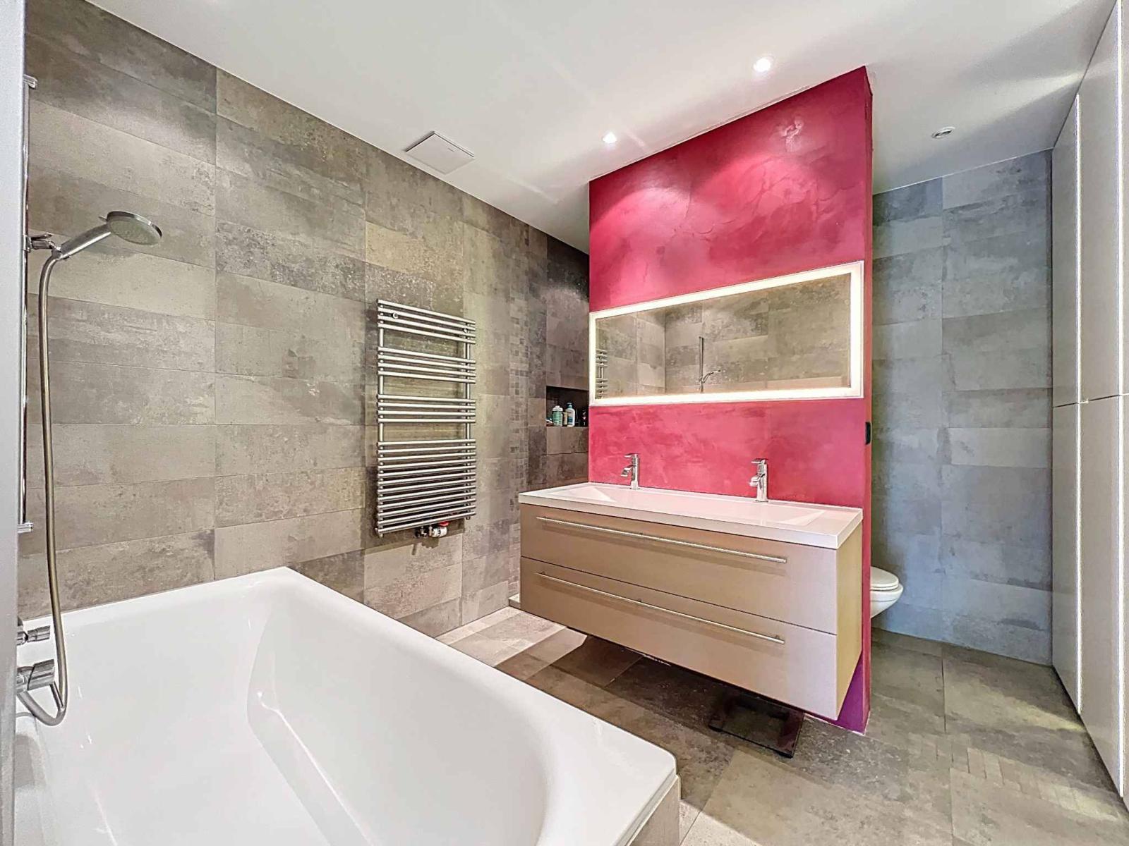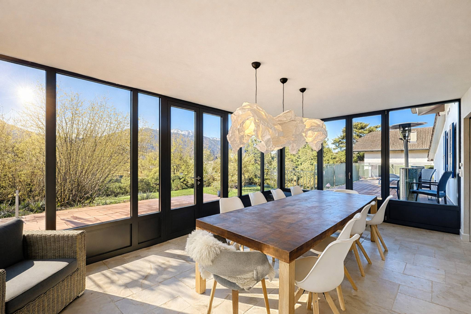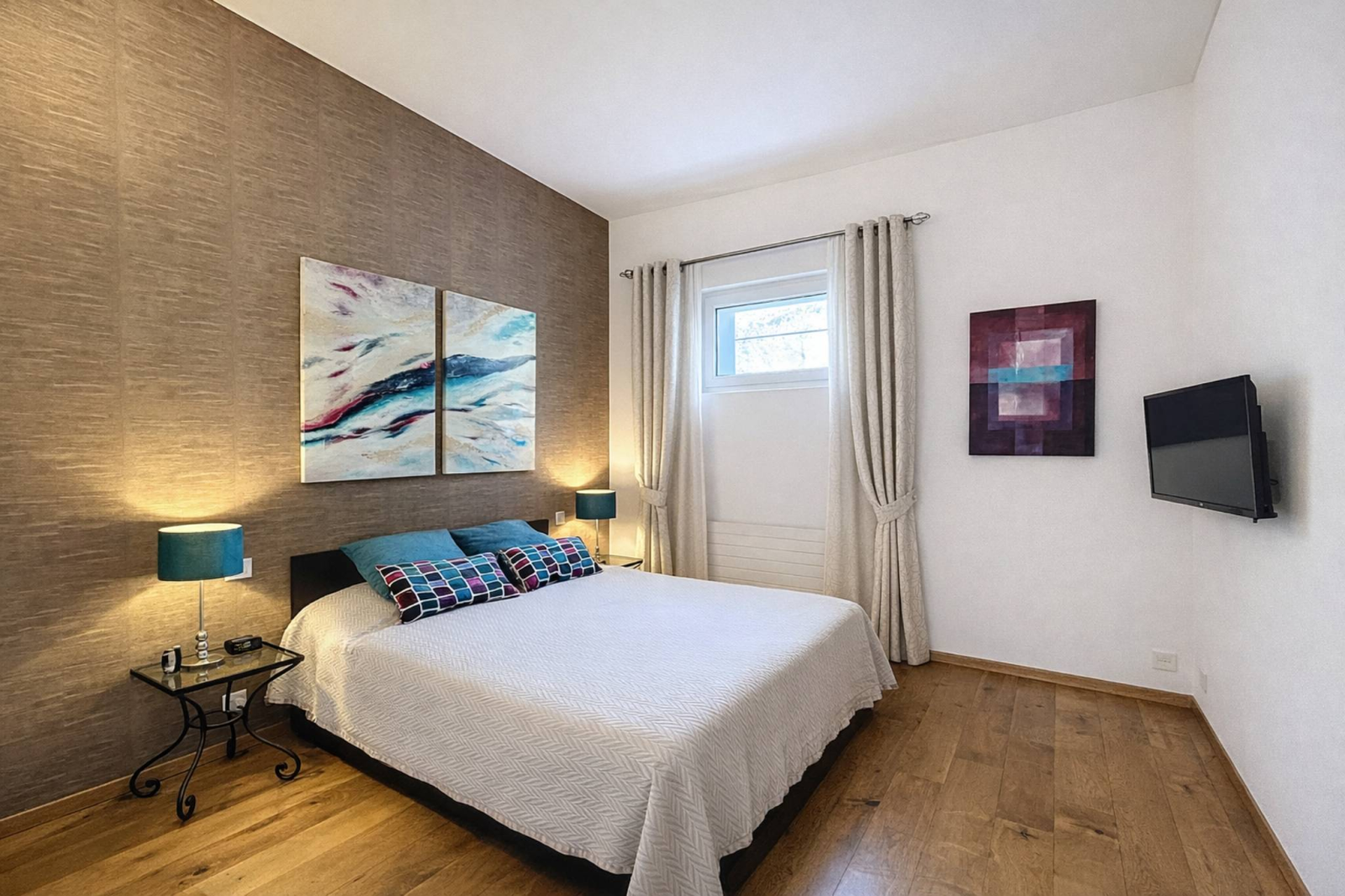 Im Obergeschoss befinden sich außerdem zwei Schlafzimmer, ein schönes Badezimmer, ein großes Wohnzimmer und eine separate Küche, die sich beide zu einer geschlossenen und beheizten Veranda öffnen und einen unverbauten Blick auf die Dents du Midi bieten.