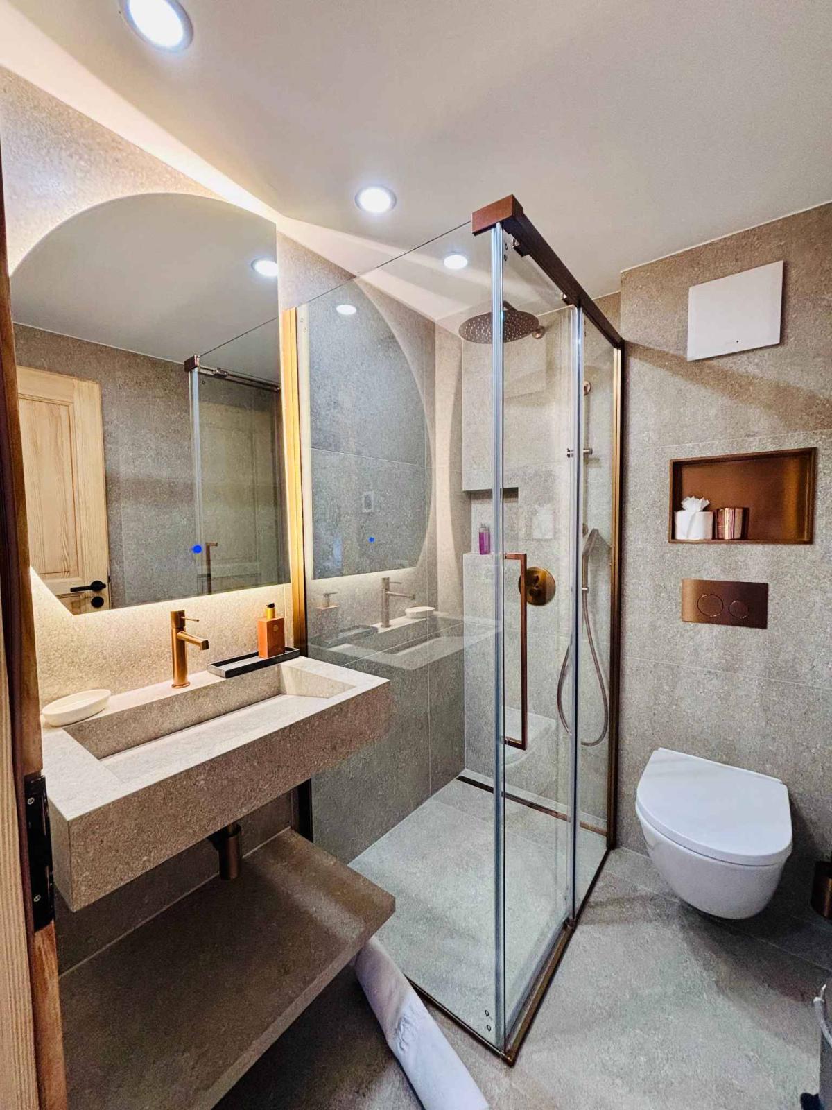Im Untergeschoss garantieren vier große Schlafzimmer mit eigenem Bad optimalen Komfort für Familie und Gäste.