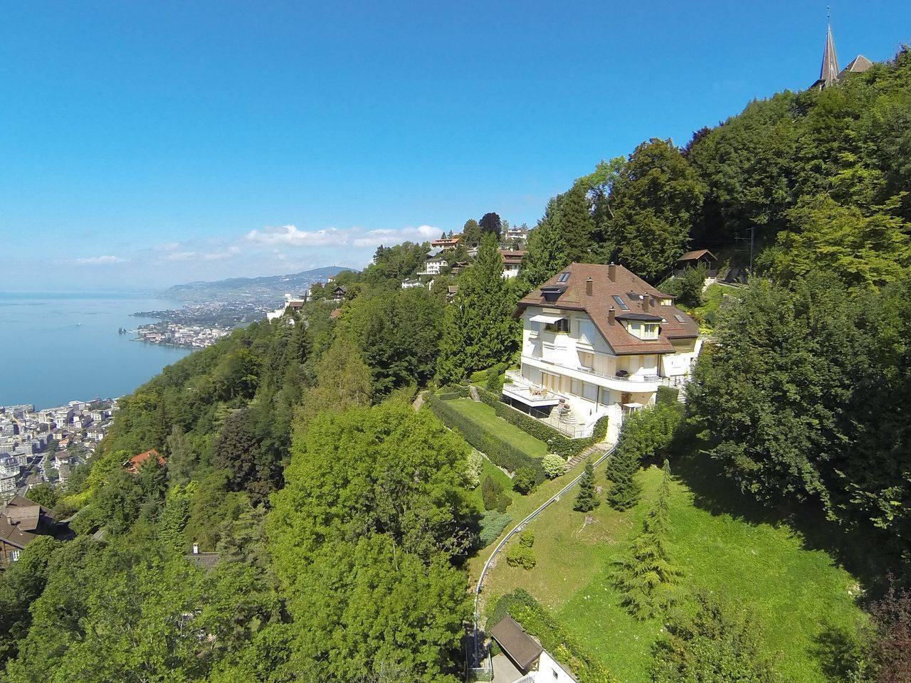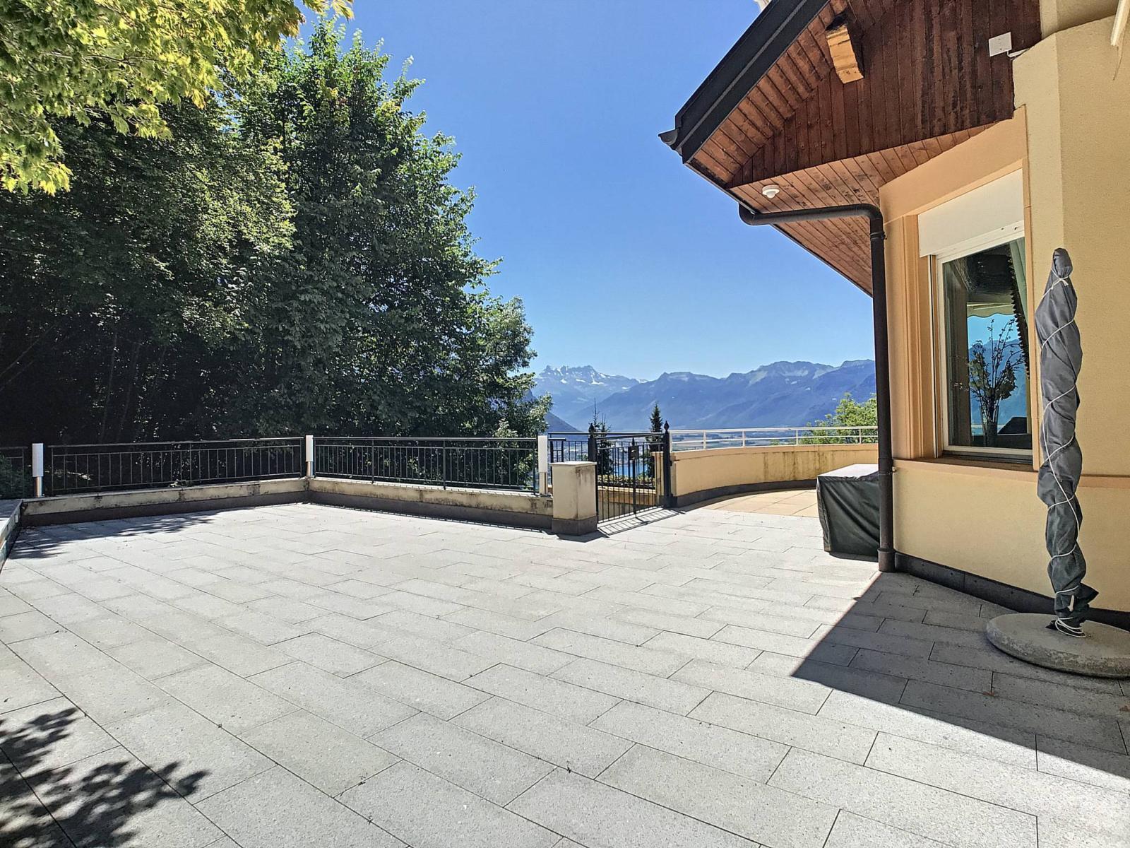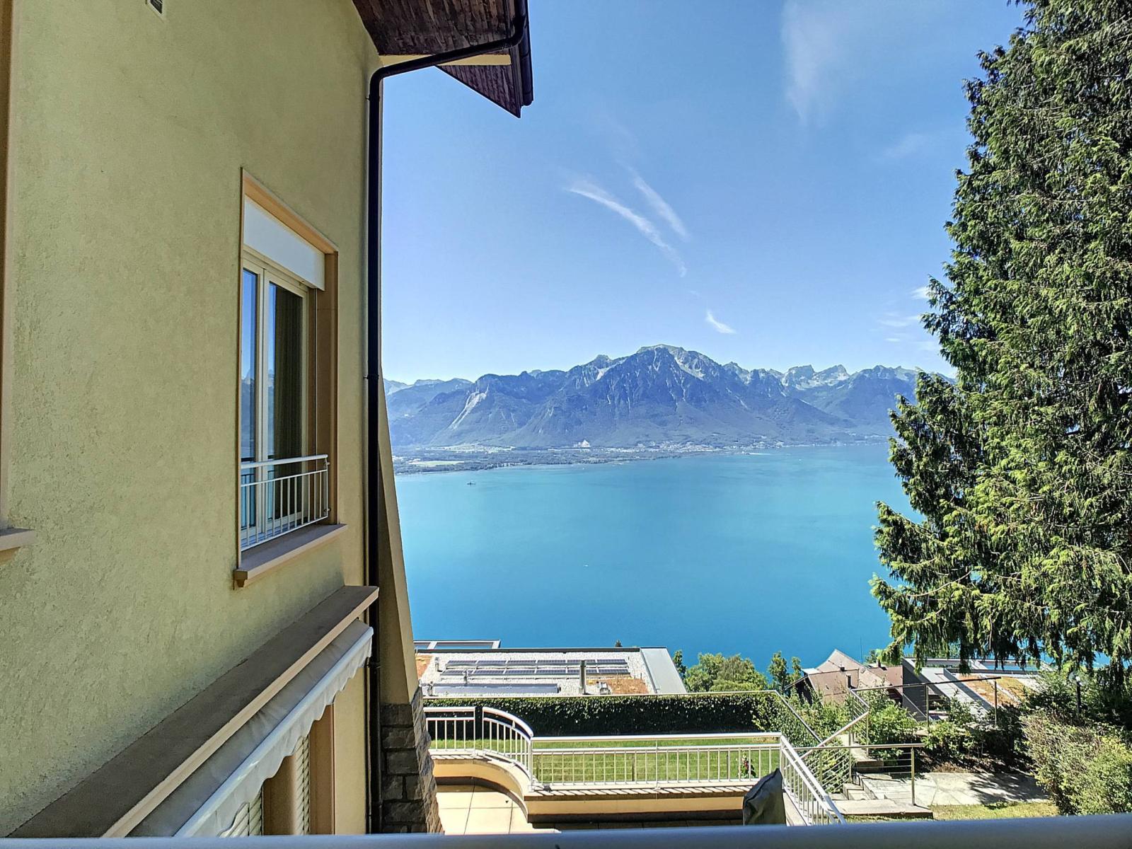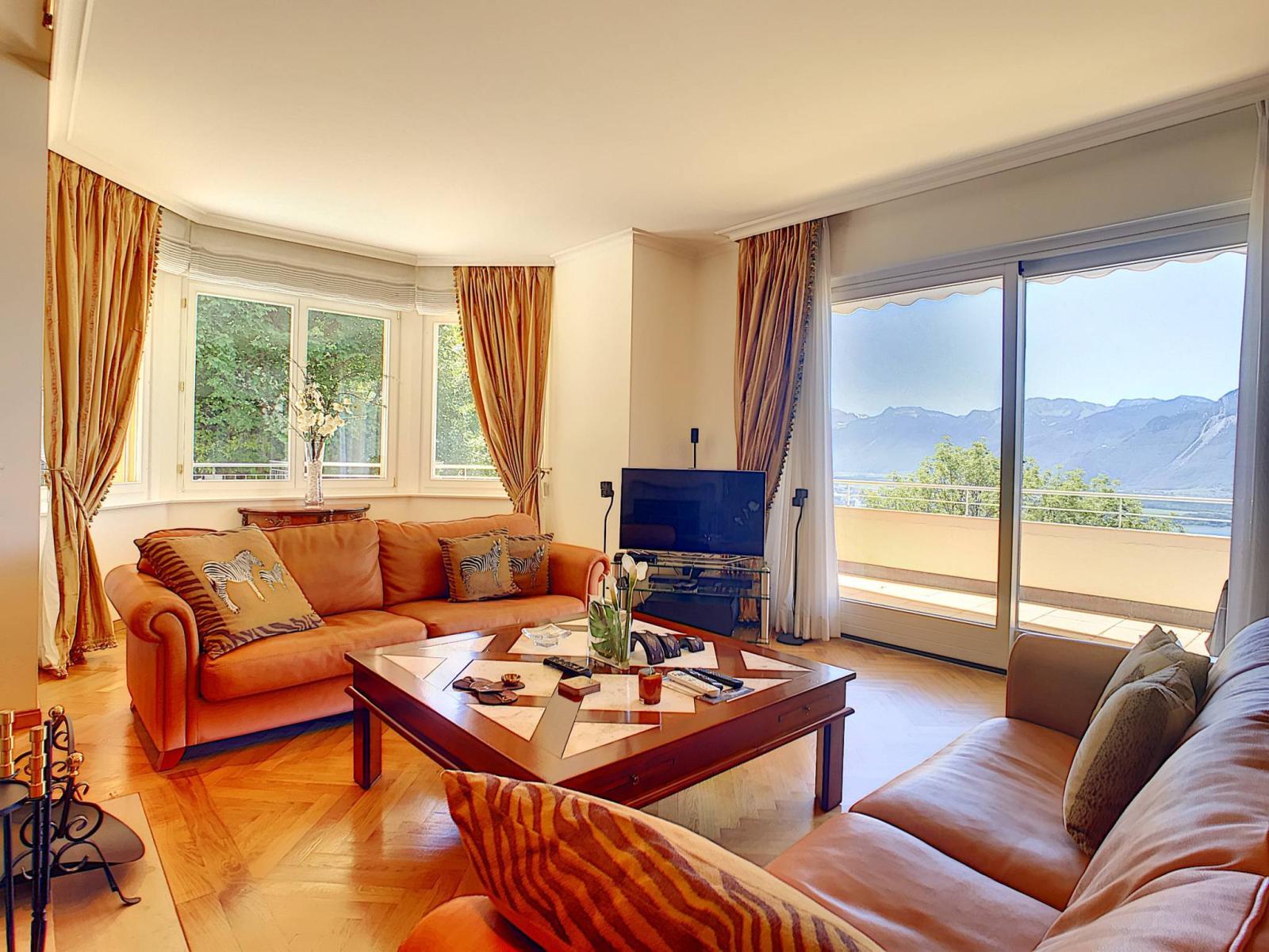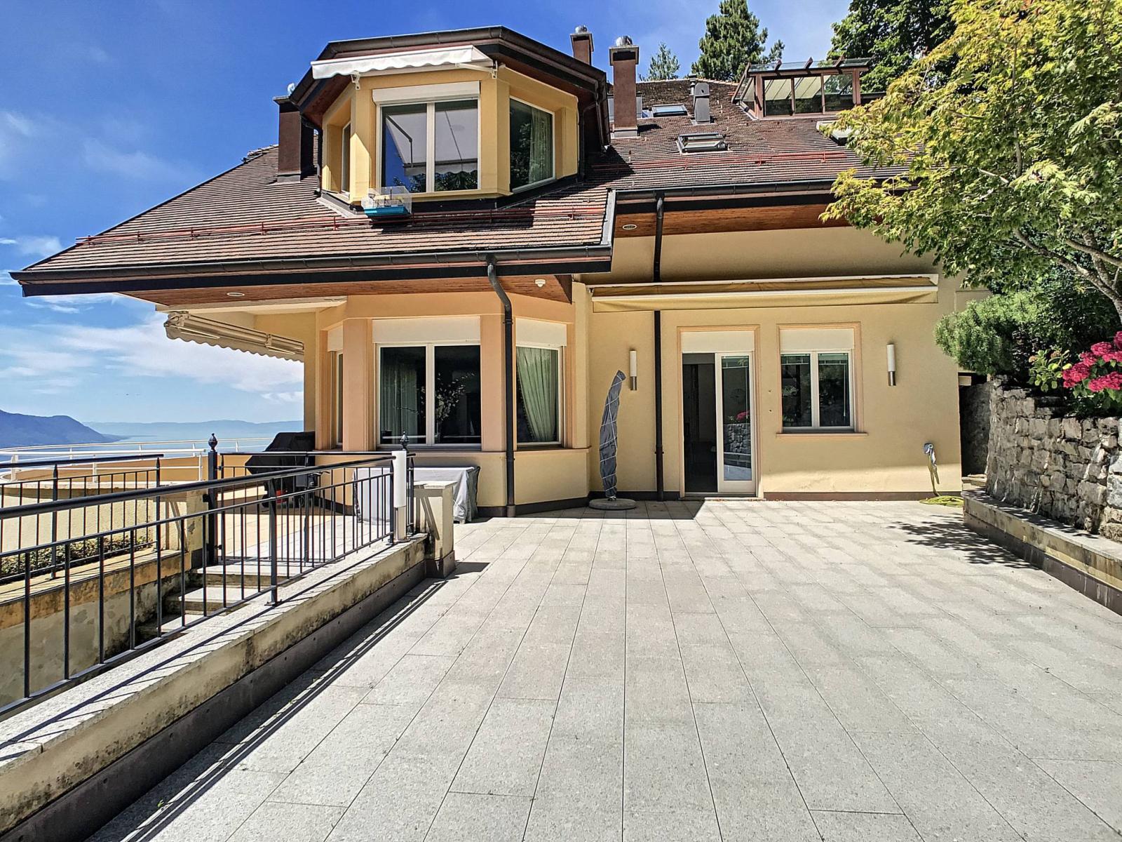 Es verfügt über hohe Decken und bietet einen spektakulären Panoramablick auf den Genfersee und die Berge.