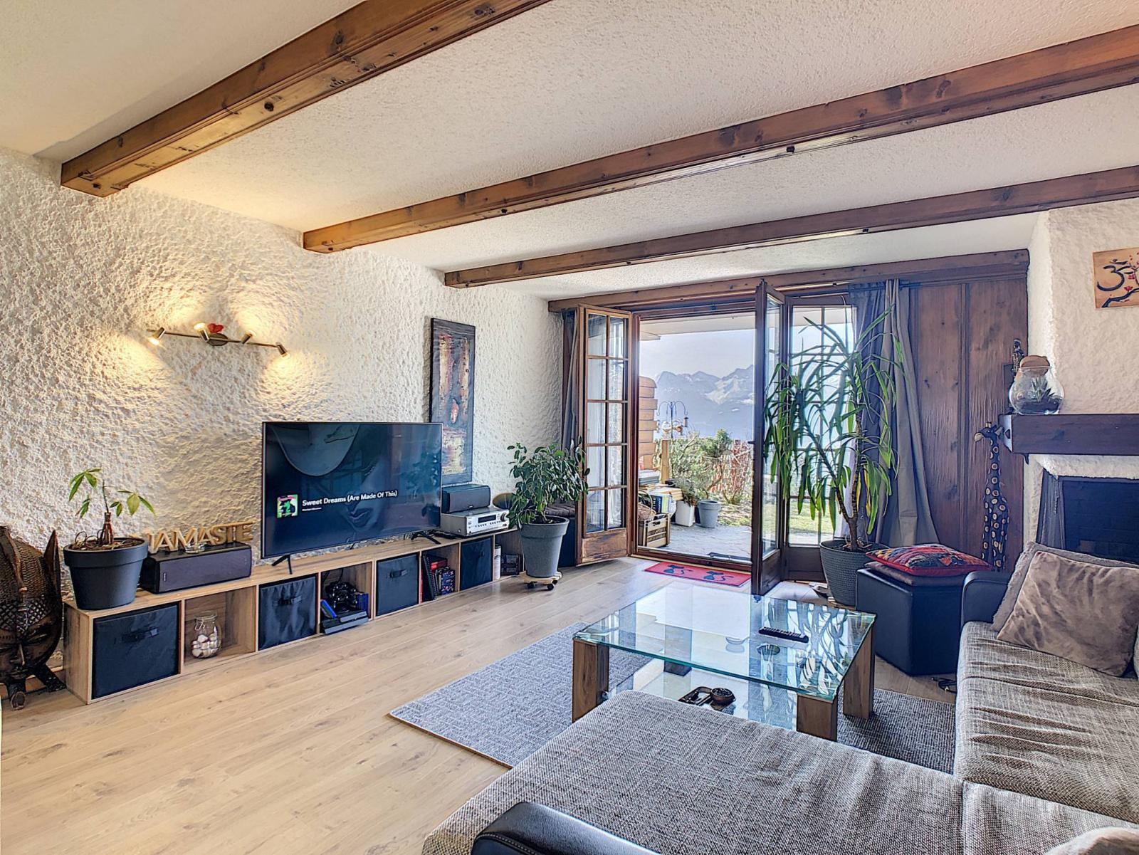 Es verfügt über eine große Südterrasse von rund 100 m², auf der Sie die herrliche Aussicht auf die Dents-du-Midi und die Sonne genießen können.