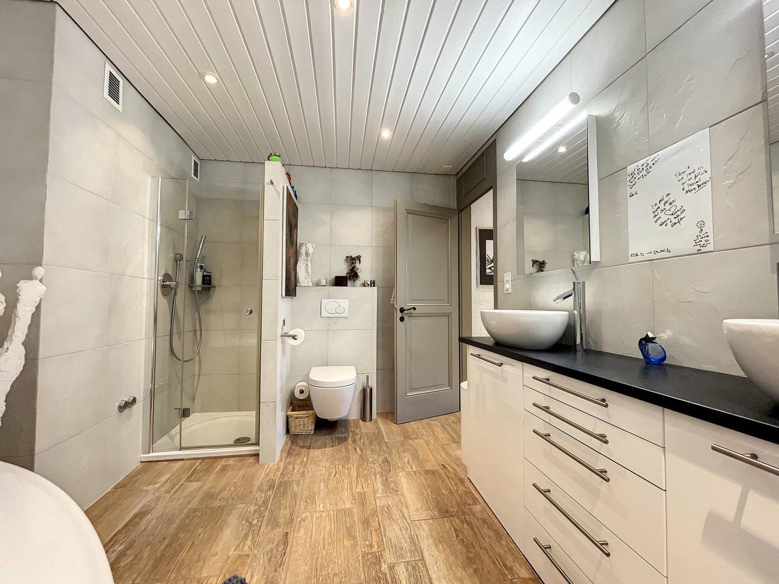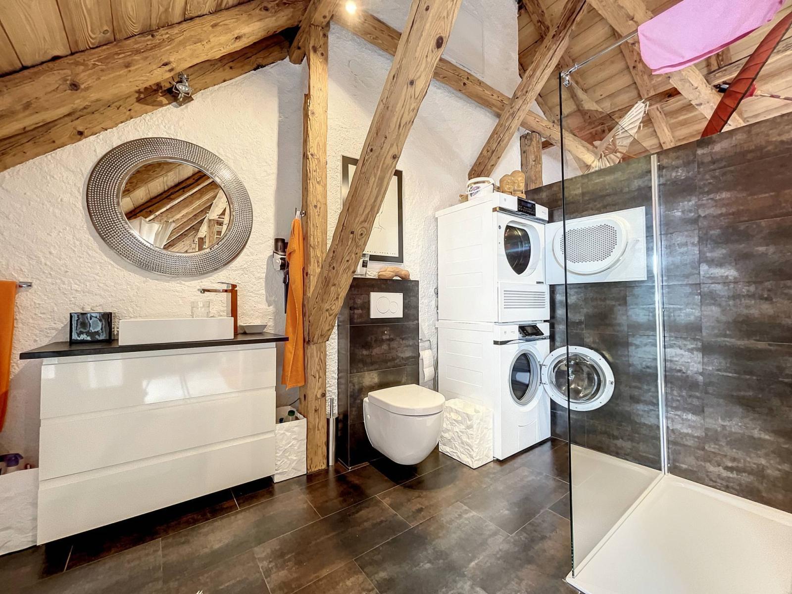 - Ein geräumiges Zwischengeschoss. - Ein Duschraum/WC mit Waschsäulen;