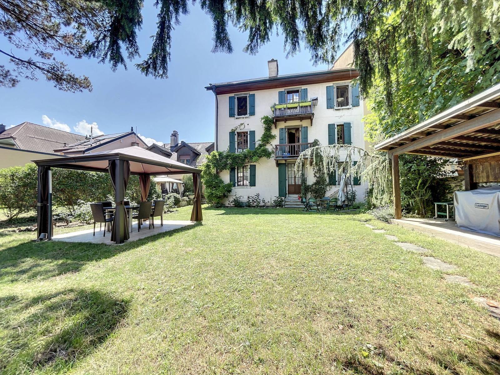 Den 3 Wohnungen steht ein großer Garten zur gemeinsamen Nutzung zur Verfügung, ebenfalls mit zwei Terrassen und einem Grillplatz.