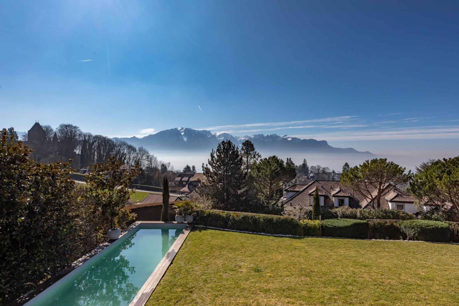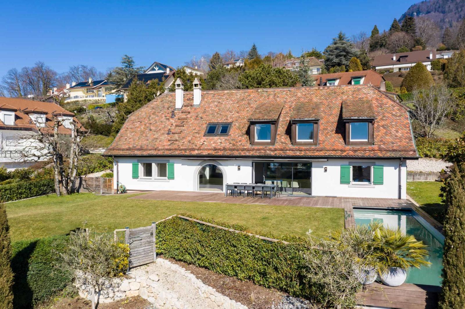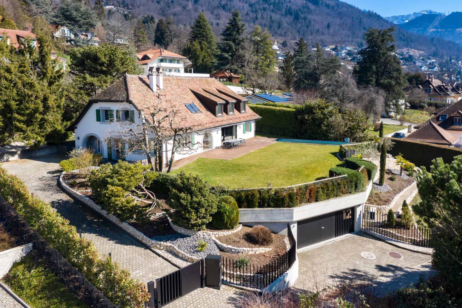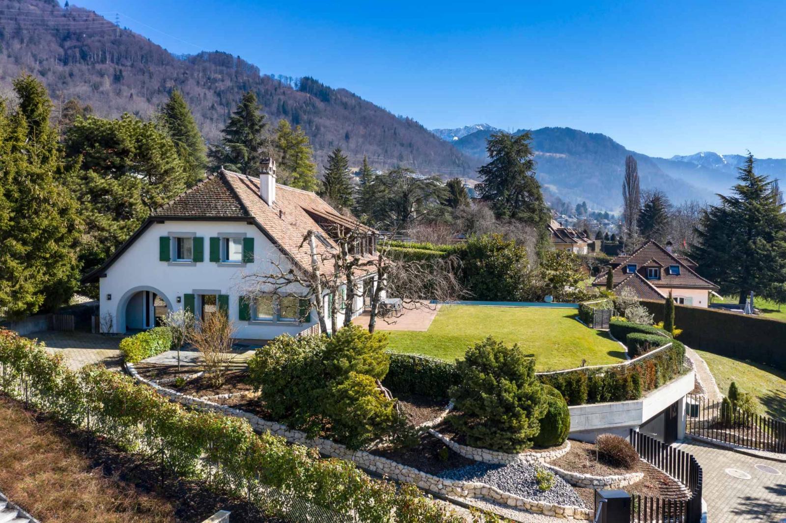 Dieses 1970 erbaute und vollständig renovierte Einfamilienhaus auf einem Grundstück von fast 1.900 m² befindet sich mit 8,5 Zimmern und einer Wohnfläche von ca. 280 m² und 395 m² Nutzfläche im begehrtesten Viertel der Gemeinde St-Légier-La Chiésaz, in einer ruhigen und grünen Umgebung, mit einer herrlichen Aussicht auf den See und das Château de Blonay.